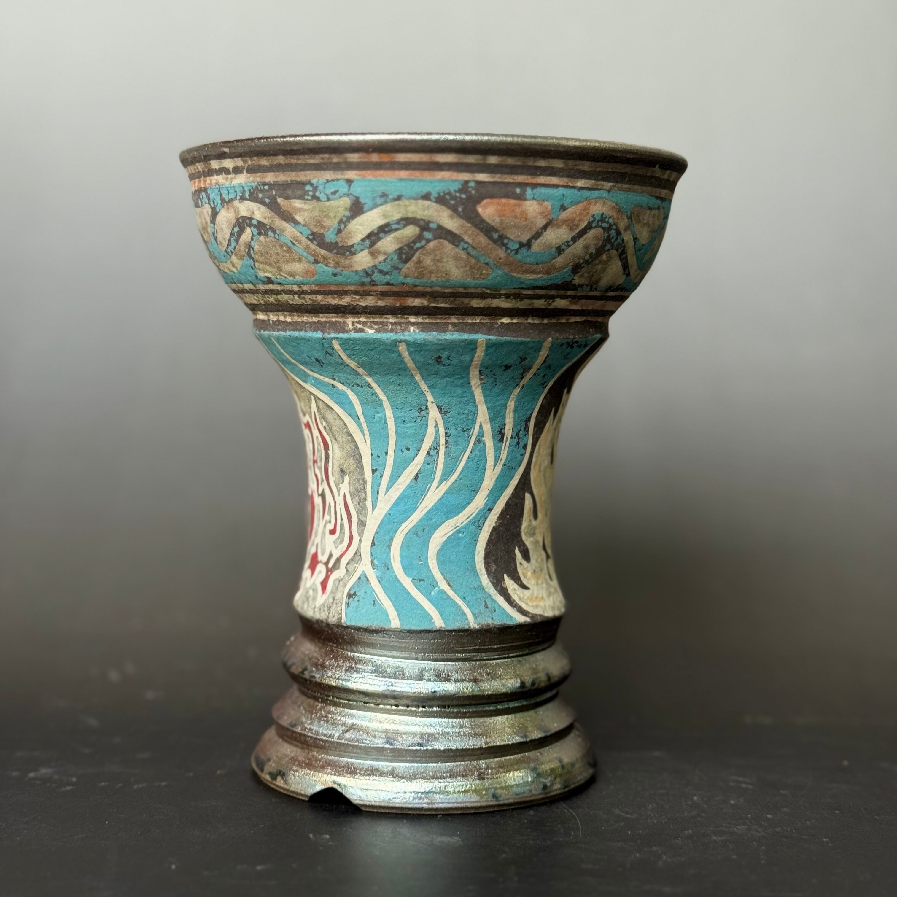 color slipによる彩色は、薪による炭彩が加わり派手でありながら渋さのある遺跡から発掘された彩色土器の風合いを帯びるよう願っています。