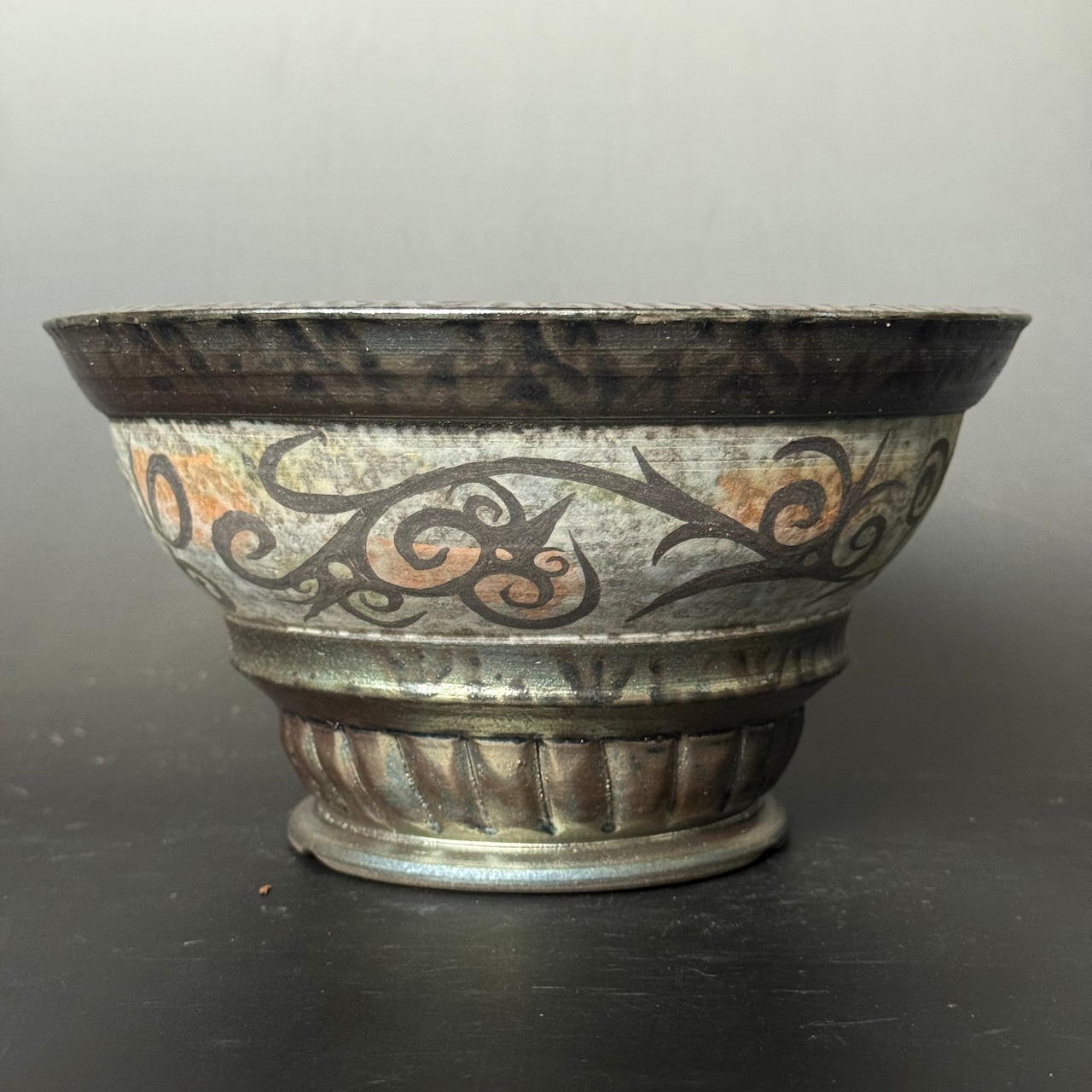 ラスター系の金属光沢で、窯野の中の置く位置で