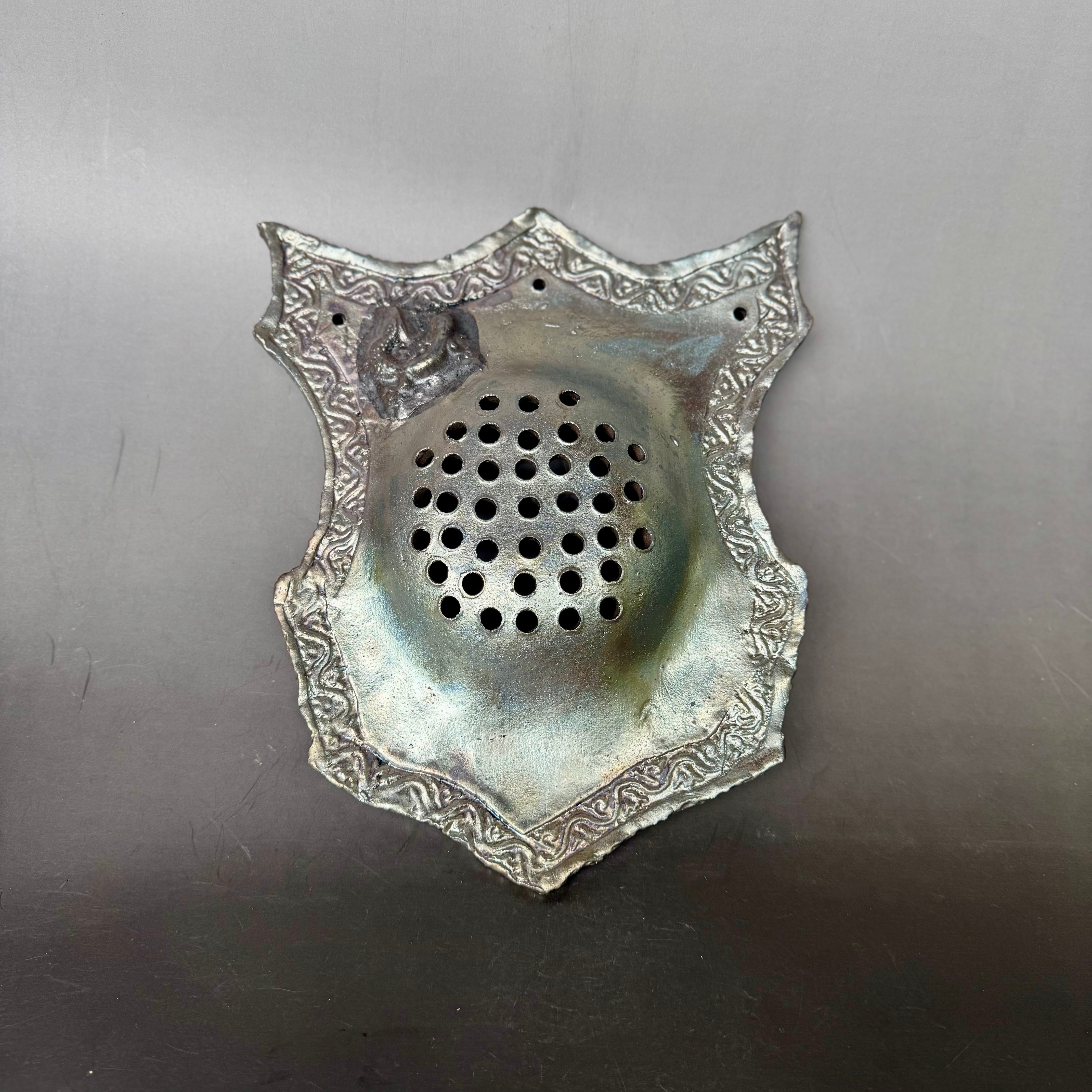 陶器で作ったビカクシダ(コウモリラン)の着生盤です。本体にふくらみを持たせて通気性を確保しました。貯水葉が全面を覆い前から水やりがやり難い場合でも、着生板裏から中央の穴を使い水やりが出来るように成形しました。