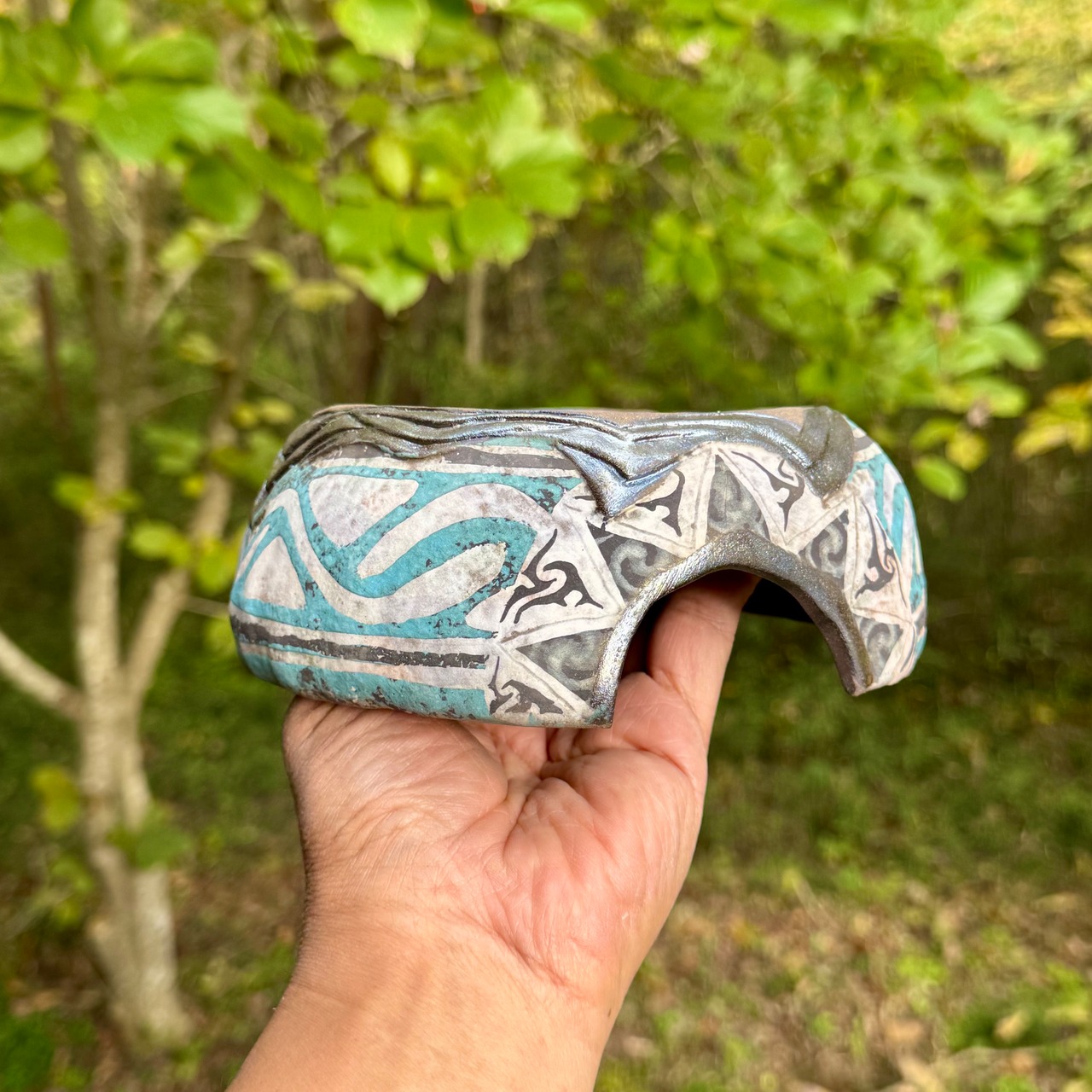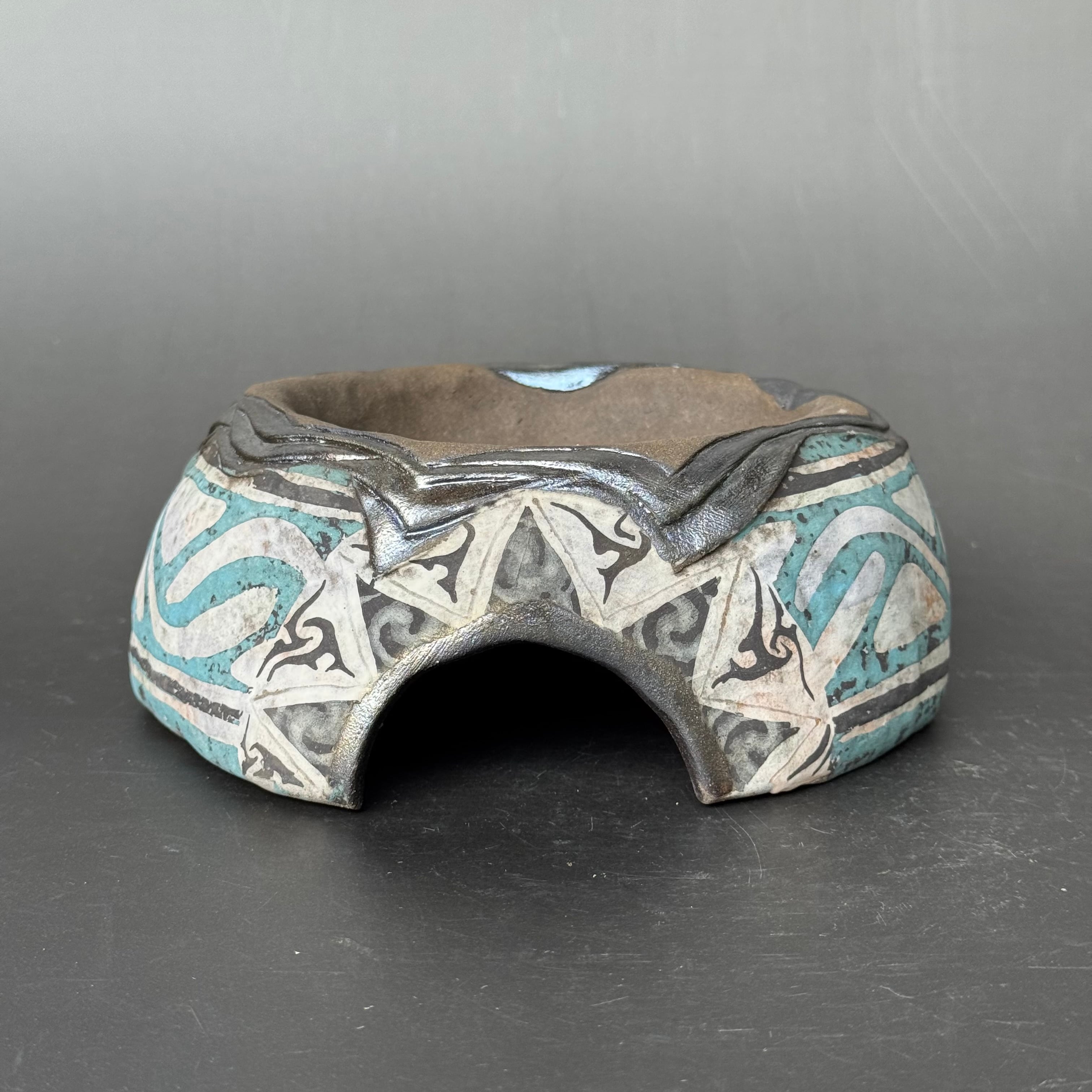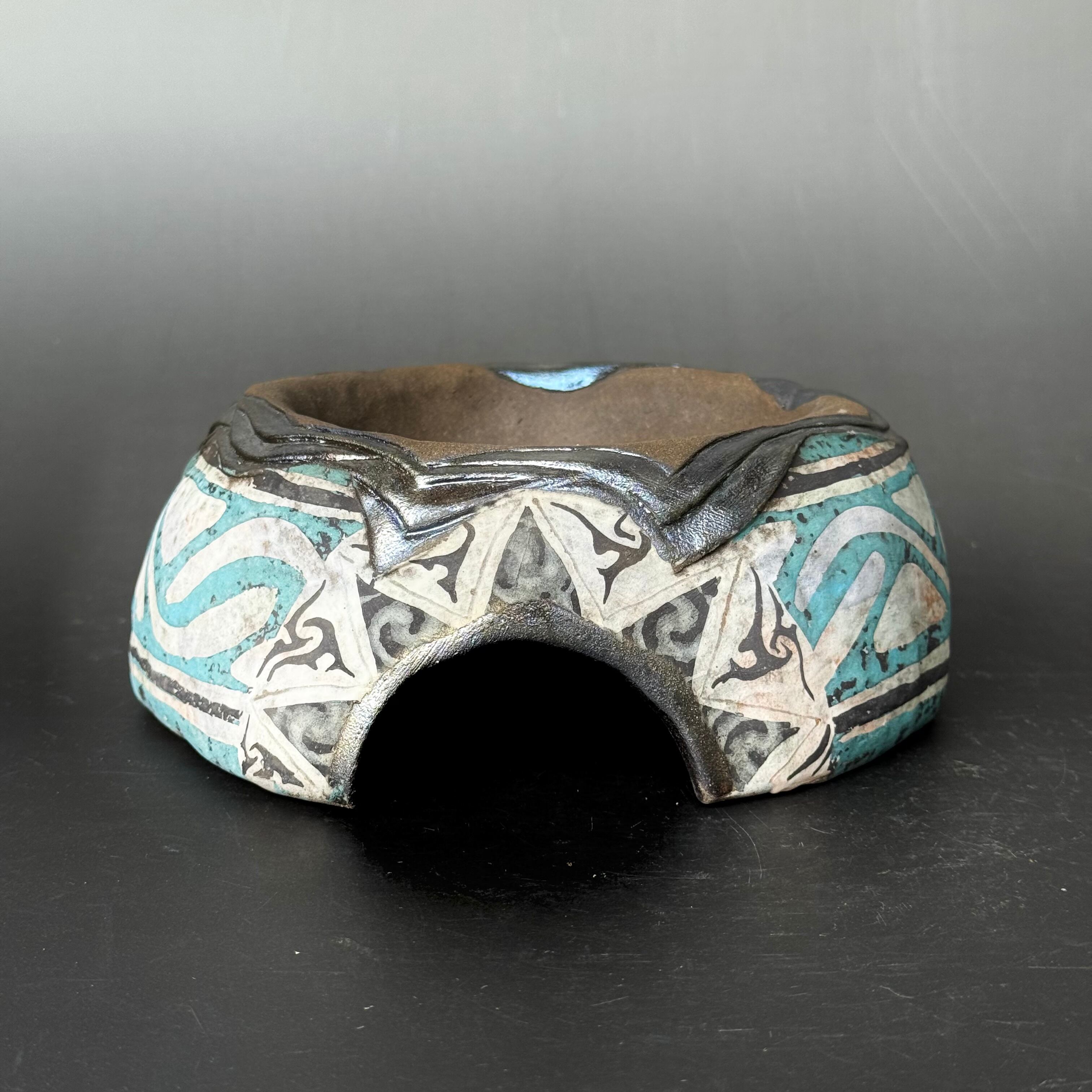 また内側には釉薬(黒銀釉)をかけ、乾き過ぎないように配慮しました。また脱皮しやすくなるかと、内側に薄く木肌模様を入れ少し凹凸をつけてみました。高温での焼成で焼きしまっているためカビなども繁殖しずらいと思います。