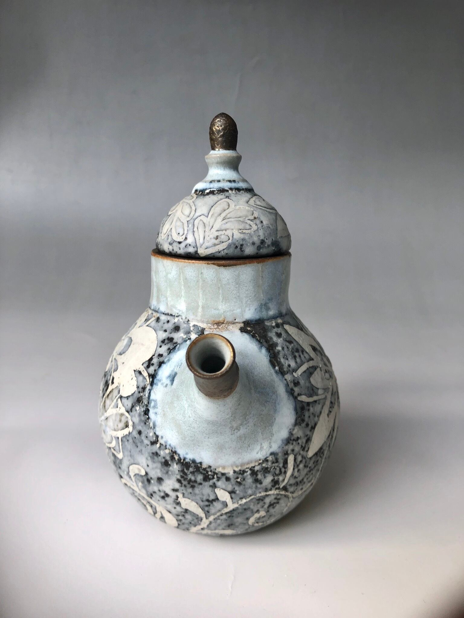 内側の釉薬は、失透白。注ぎ口内側には、小さな穴を網のようにあけています。(画像で確認できます。)