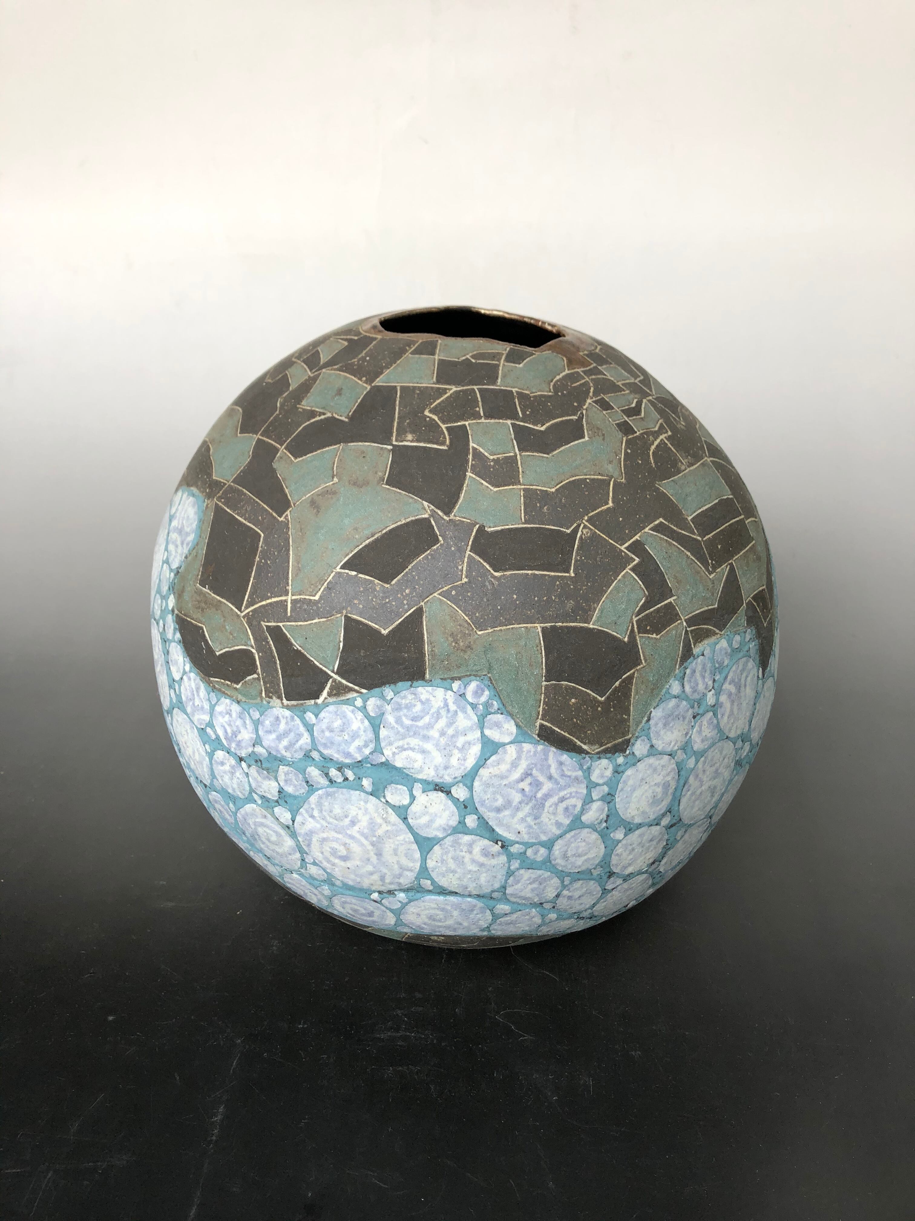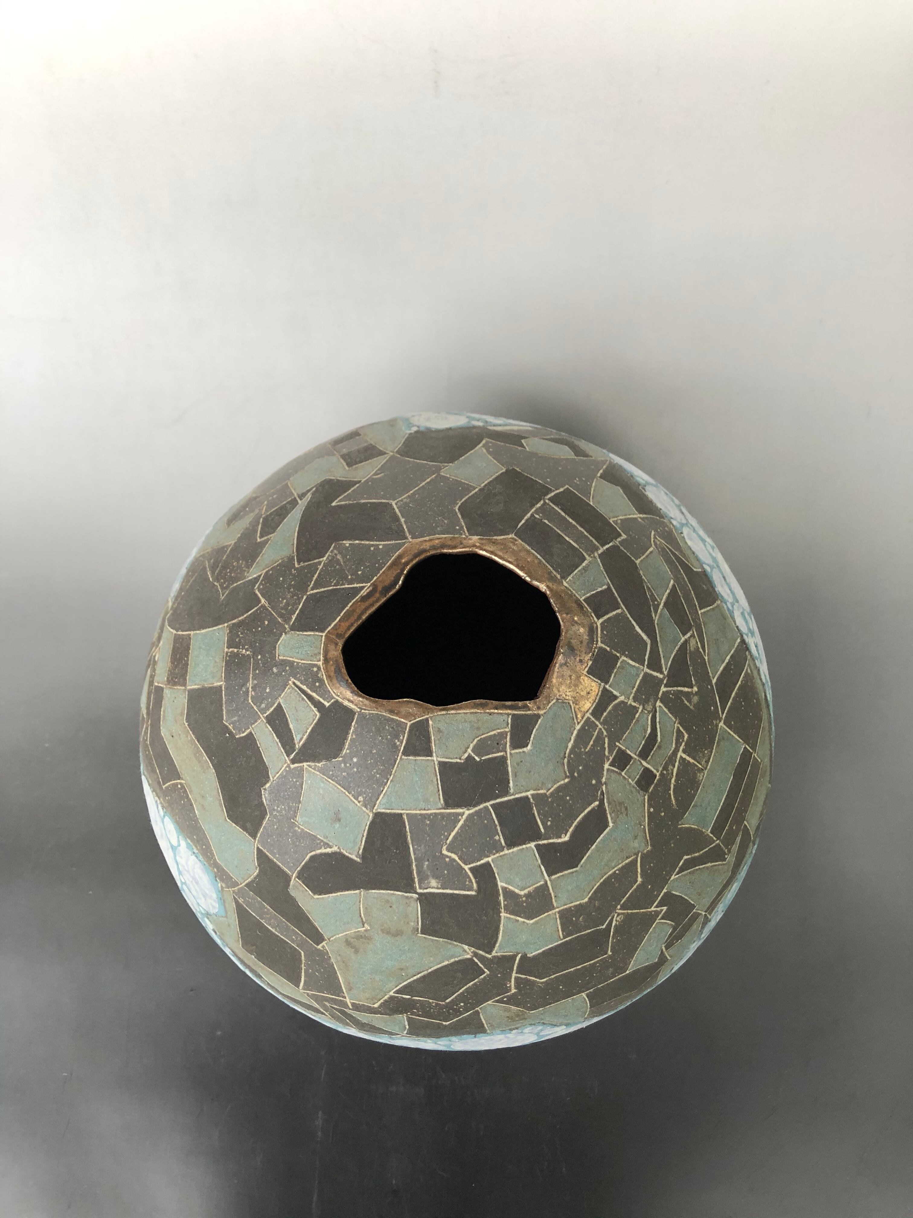 波光紋象嵌陶球