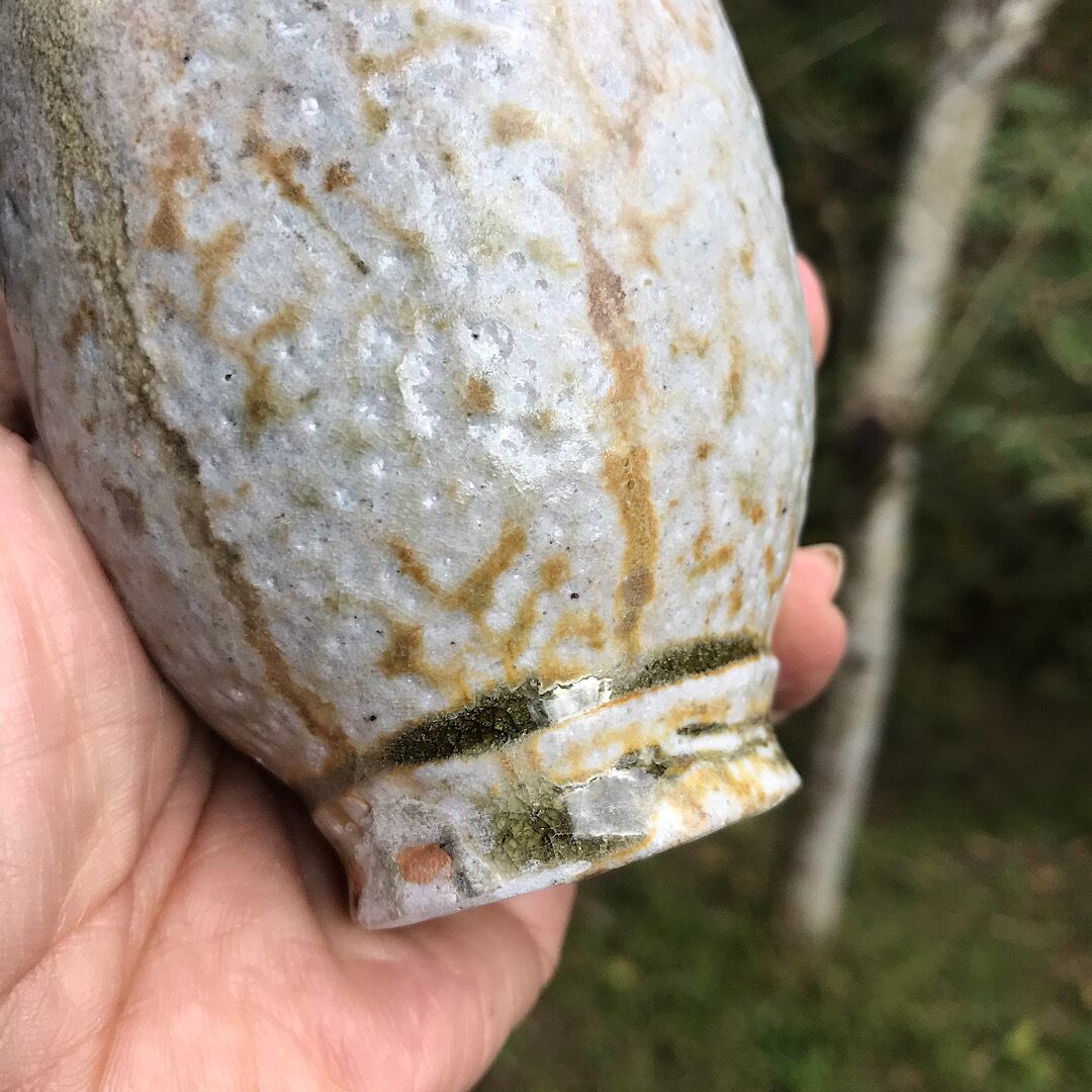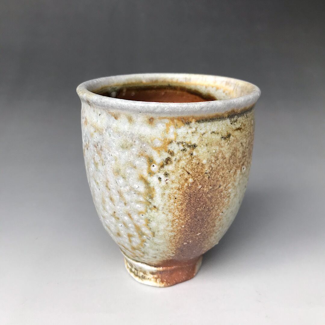 薪窯(穴窯)で焼成、薪の灰が窯の中を舞う炎によって器肌に付着し陶土の成分と化合し釉薬化した自然釉です。