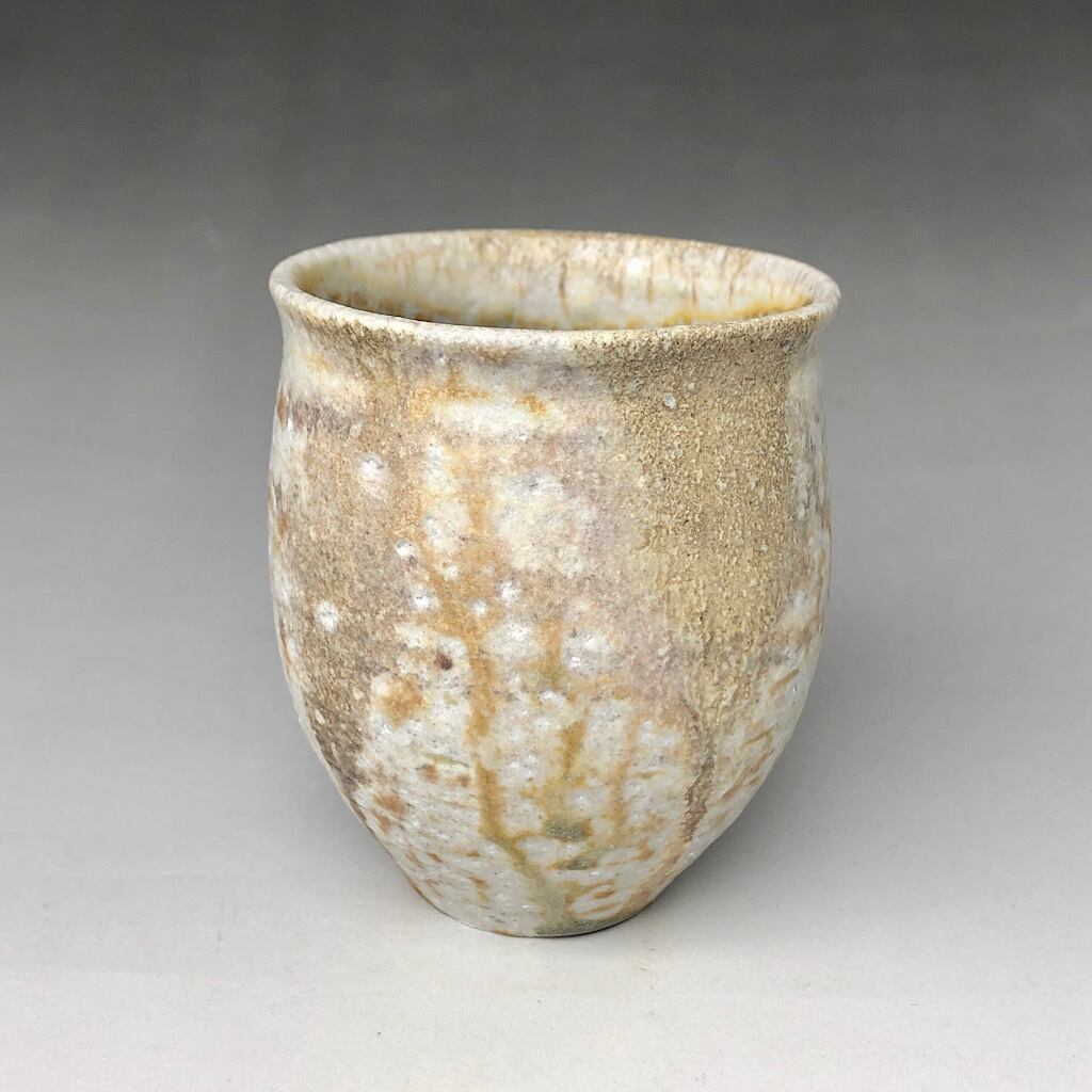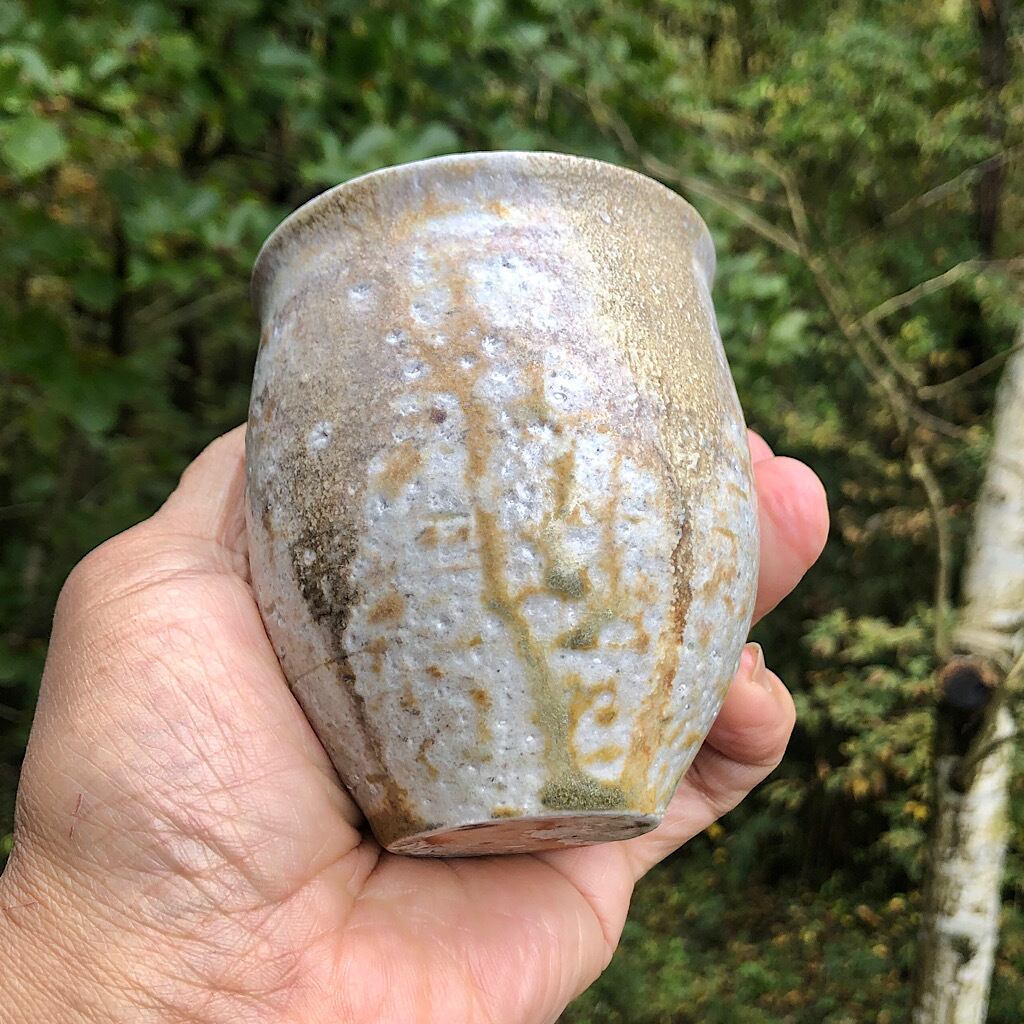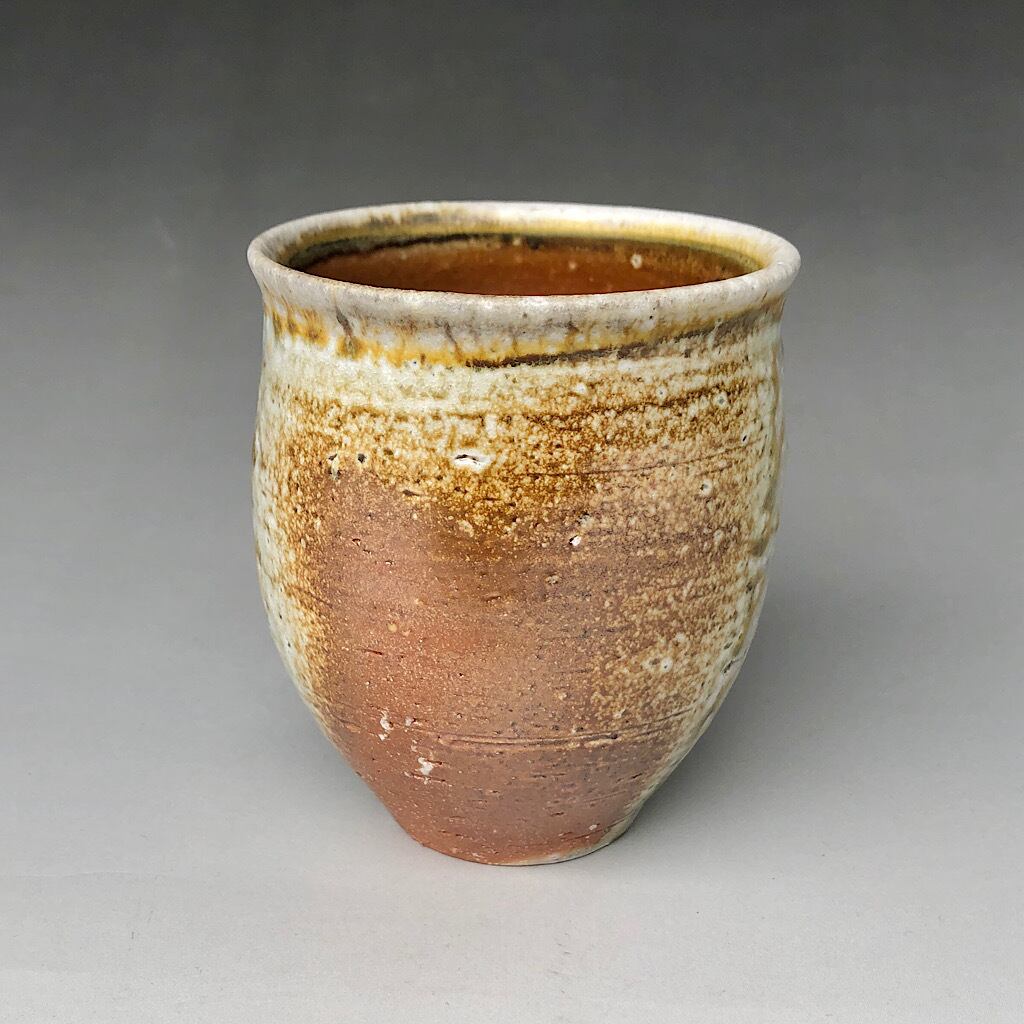 薪窯(穴窯)で焼成、薪の灰が窯の中を舞う炎によって器肌に付着し陶土の成分と化合し釉薬化した自然釉です。
