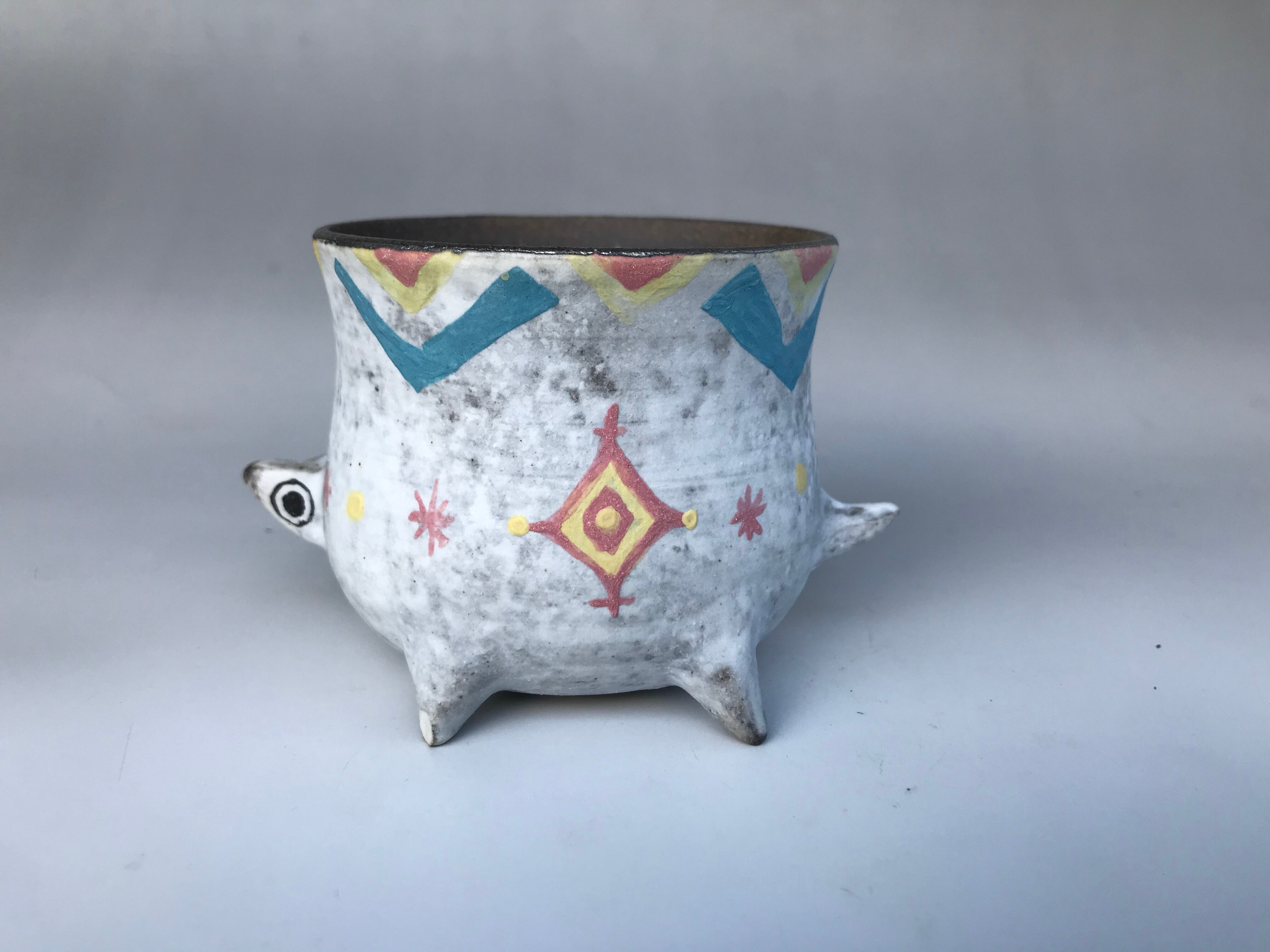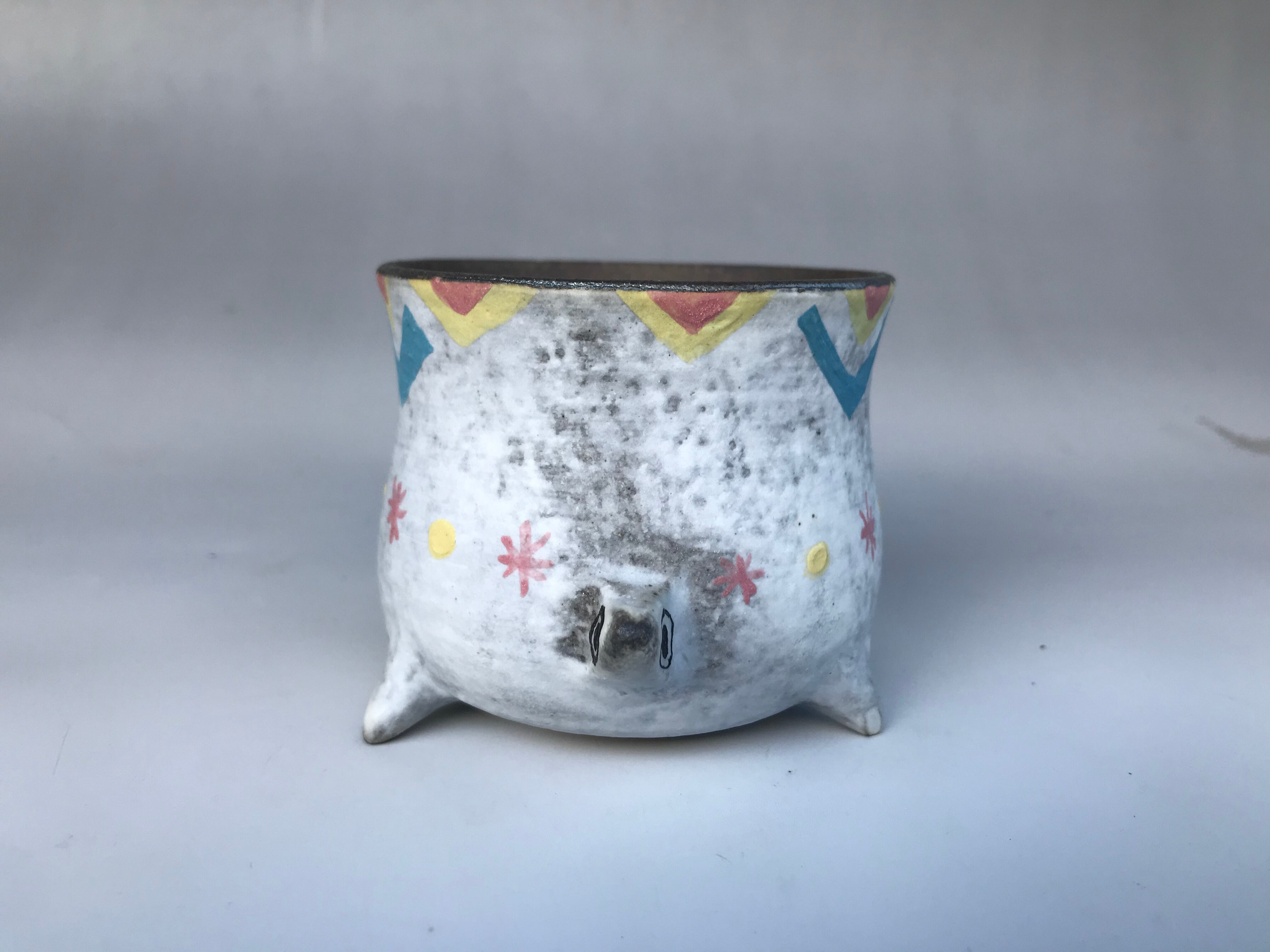 四つ脚の動物型の手作りの小さな植木鉢です。