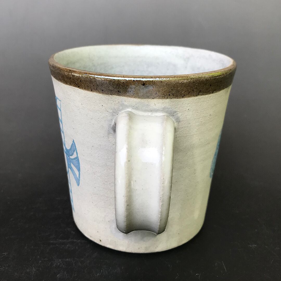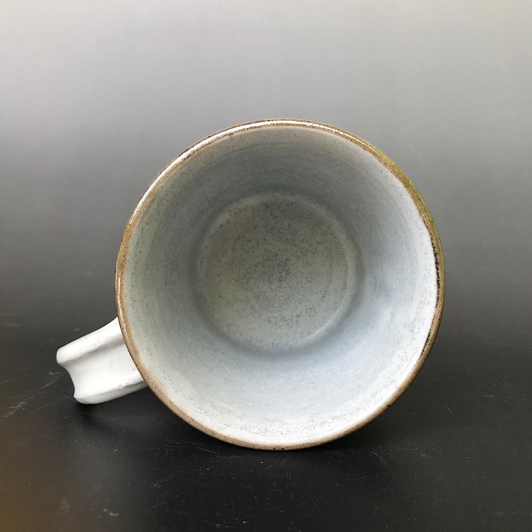 内側の釉薬は、硬い感触の失透系の白色で水色が