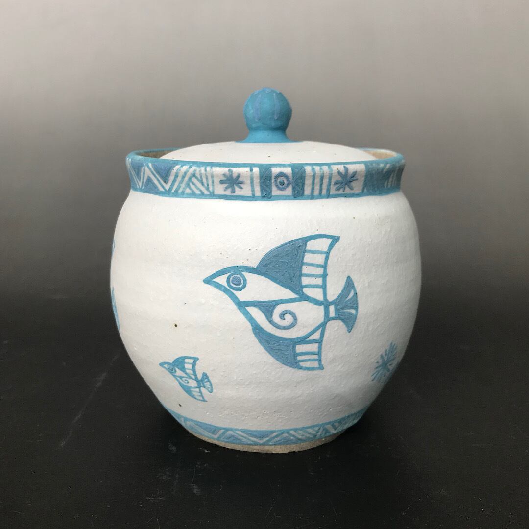内側の釉薬は、硬い感触の失透系の白色で水色が