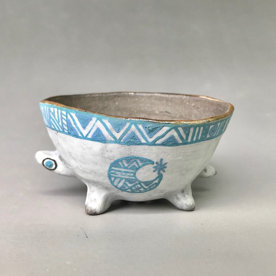 四つ脚の動物型の手作りの小さな植木鉢です。