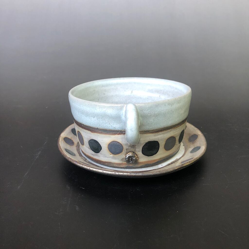 鉄と呉須絵のカップ&ソーサー(丸い取手)