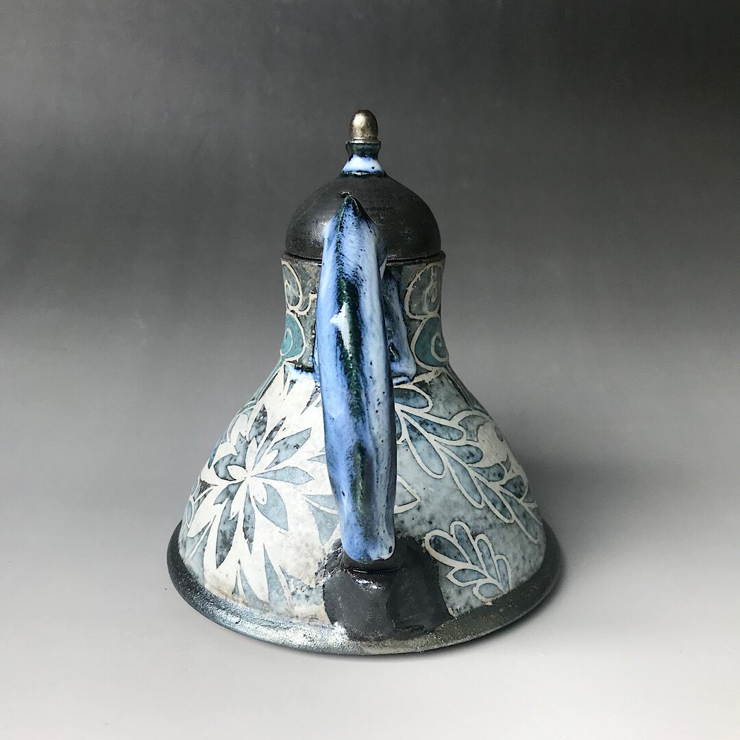 内側の釉薬は、失透白。注ぎ口内側には、小さな穴を網のようにあけています。