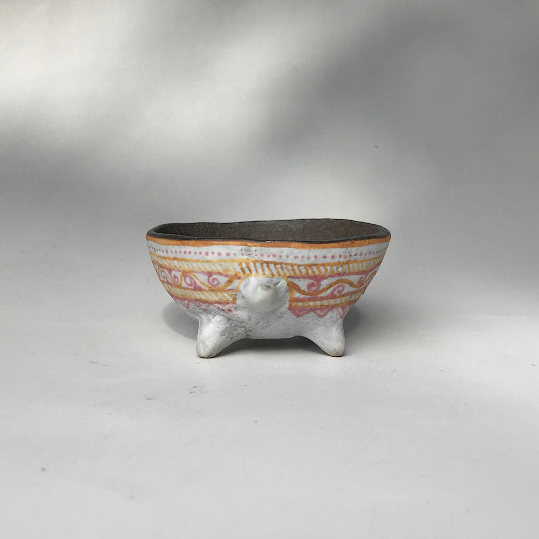四つ脚の動物型の手作りの小さな植木鉢です。