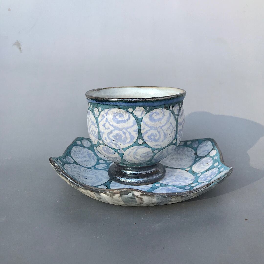 内側は、失透系の白釉、水色が映え、貫入は入りにくい釉薬です。