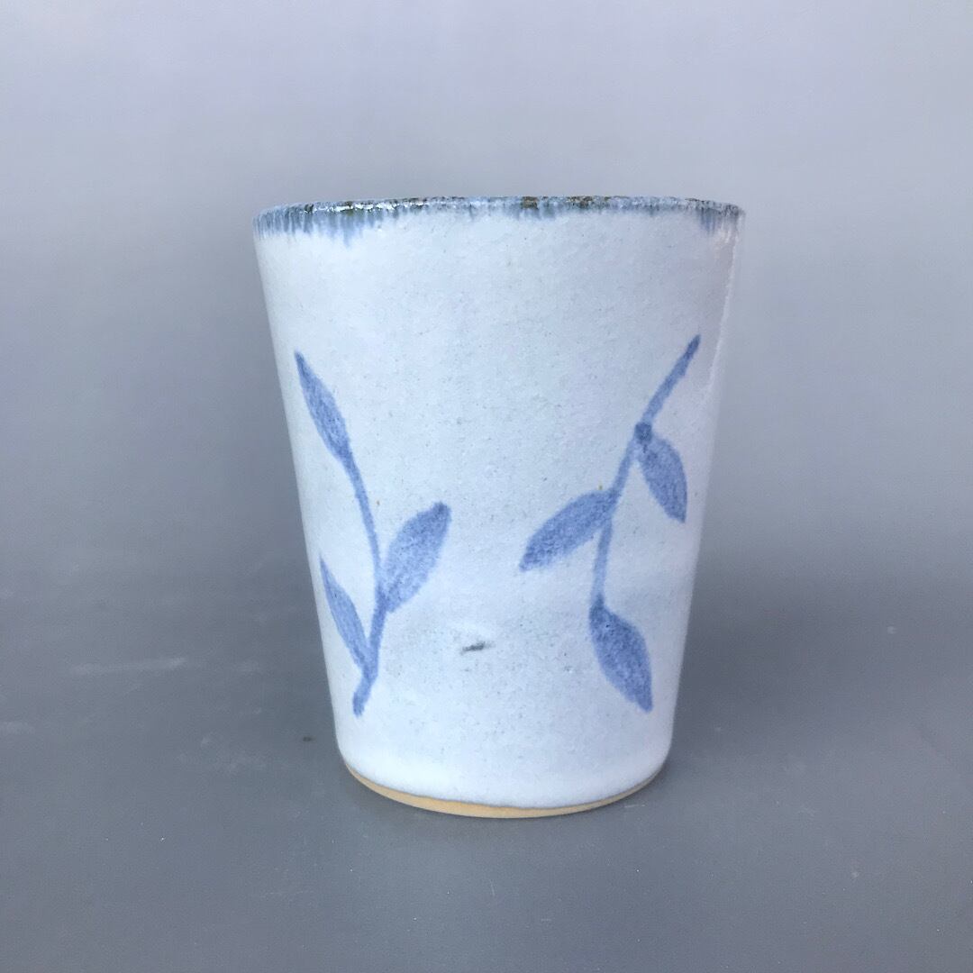 青い鳥と葉っぱ模様のフリーカップです。