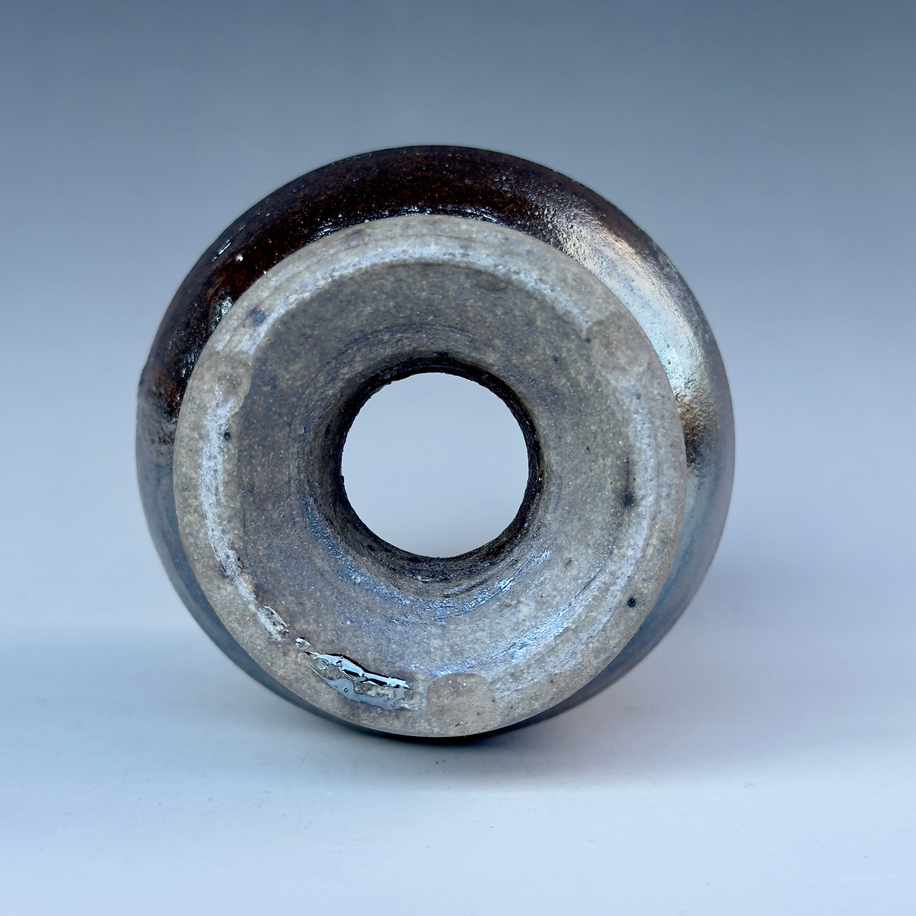 器肌全体に施された渋い光沢は、仕上げの薪による強還元焼成で得られるラスター系の金属光沢です。窯の中の置く位置で微妙に黒銀、黒金光沢などの発色が異なる特徴があります。