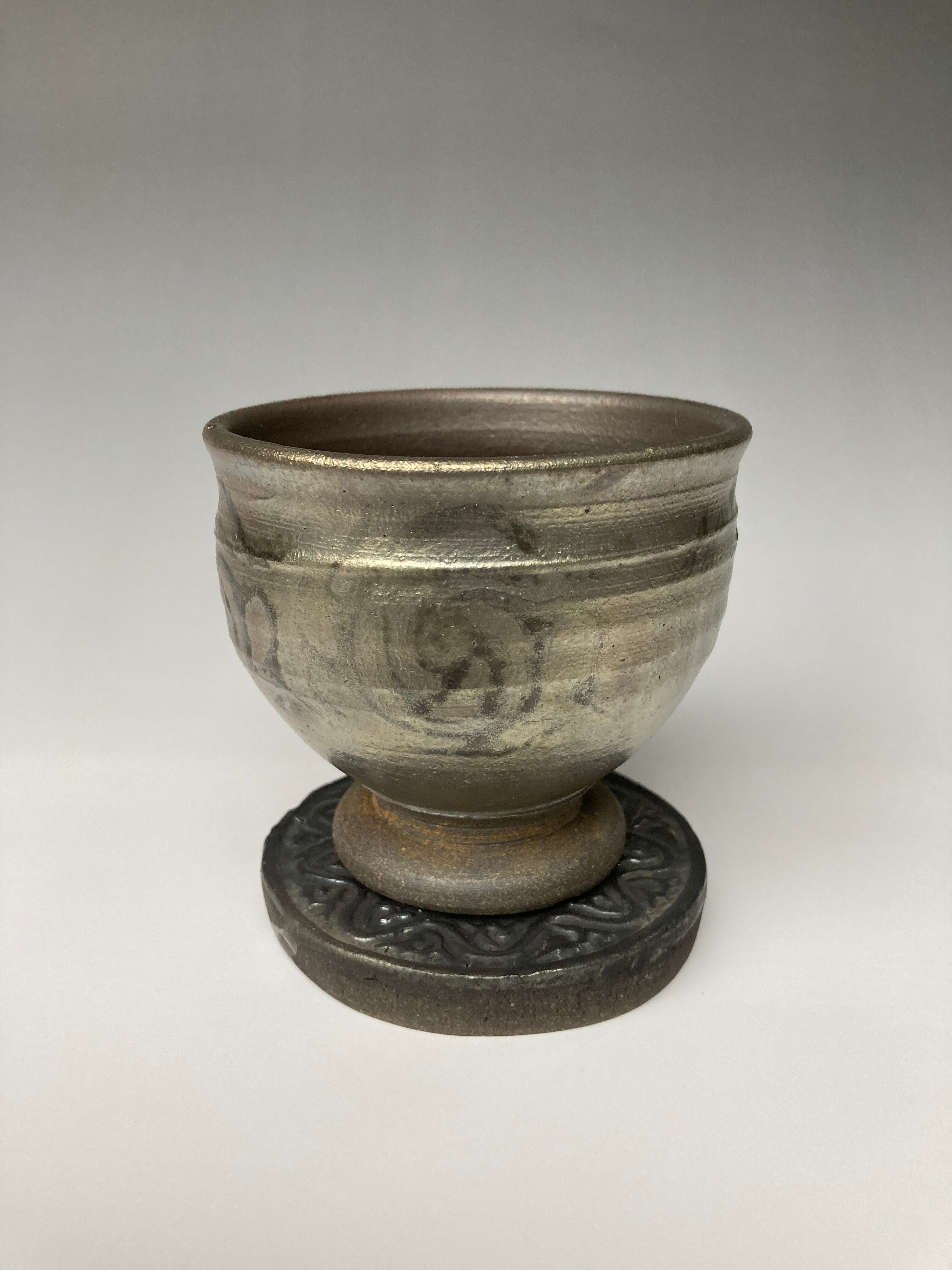 ラスター系の金属光沢で、窯野の中の置く位置で