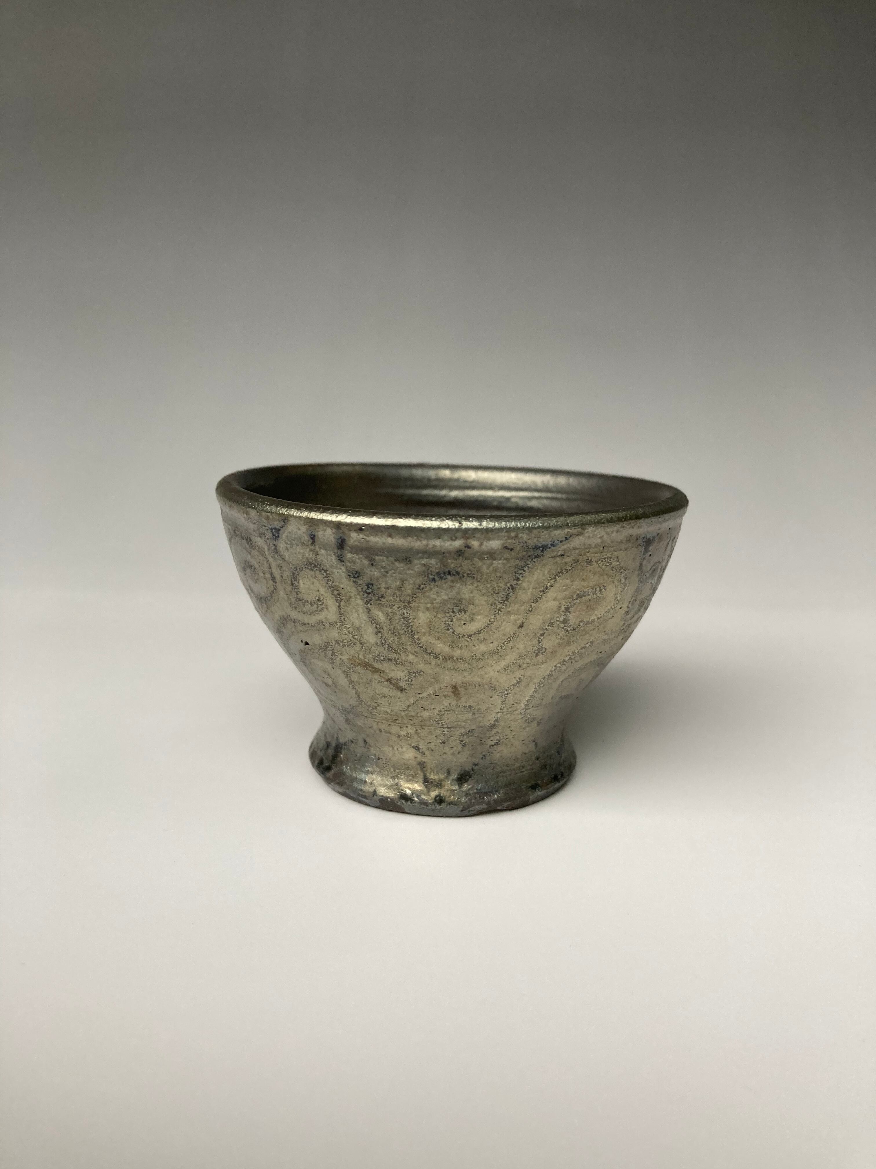 ラスター系の金属光沢で、窯野の中の置く位置で