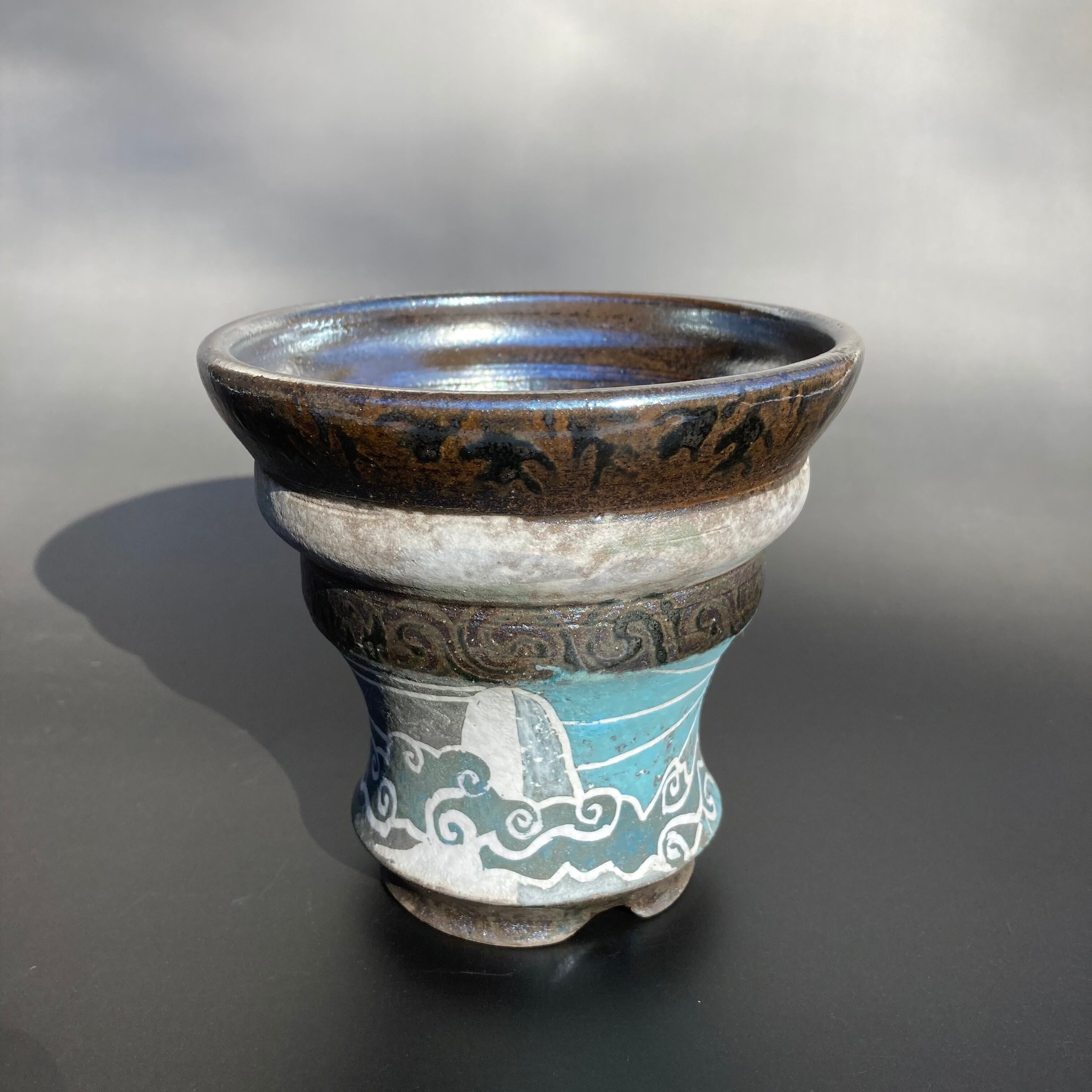 color slipによる彩色は、薪による炭彩が加わり派手でありながら渋さのある遺跡から発掘された彩色土器の風合いを帯びるよう願っています。