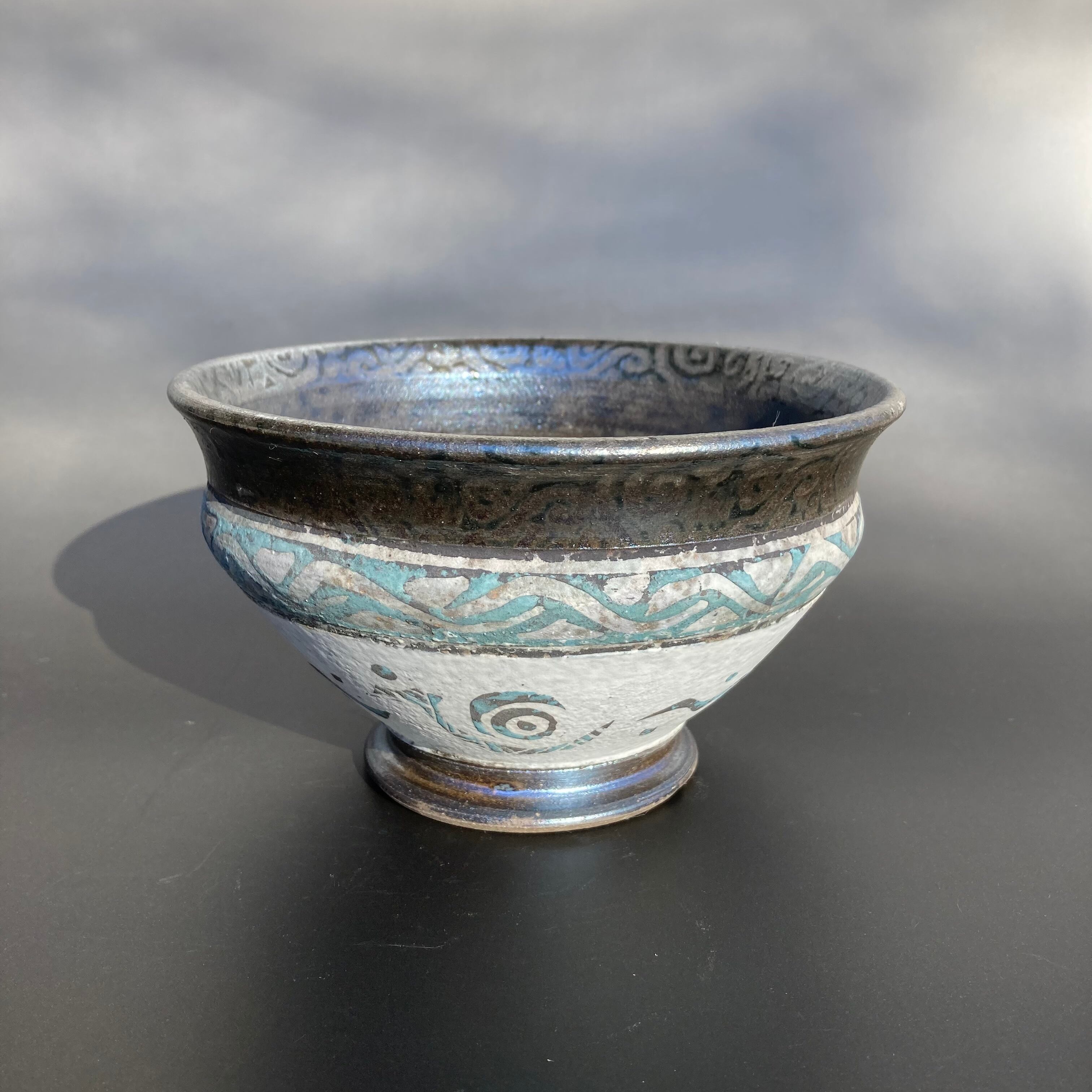 color slipによる彩色は、薪による炭彩が加わり派手でありながら渋さのある遺跡から発掘された彩色土器の風合いを帯びるよう願っています。