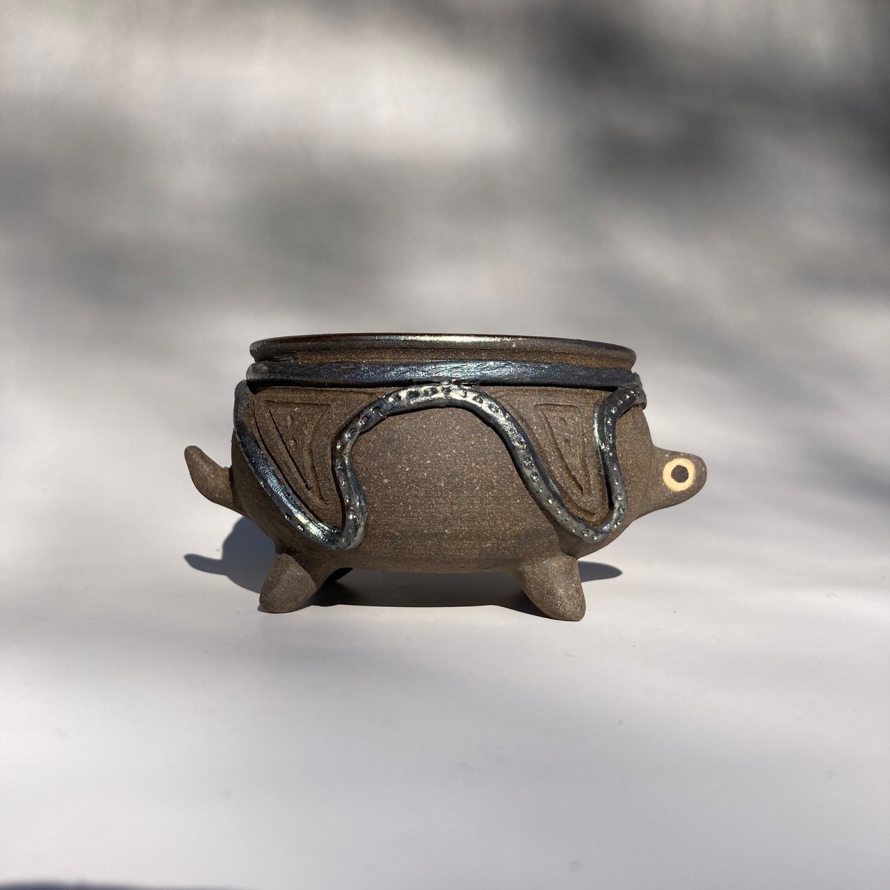 四つ脚の動物型の手作りの小さな植木鉢です。