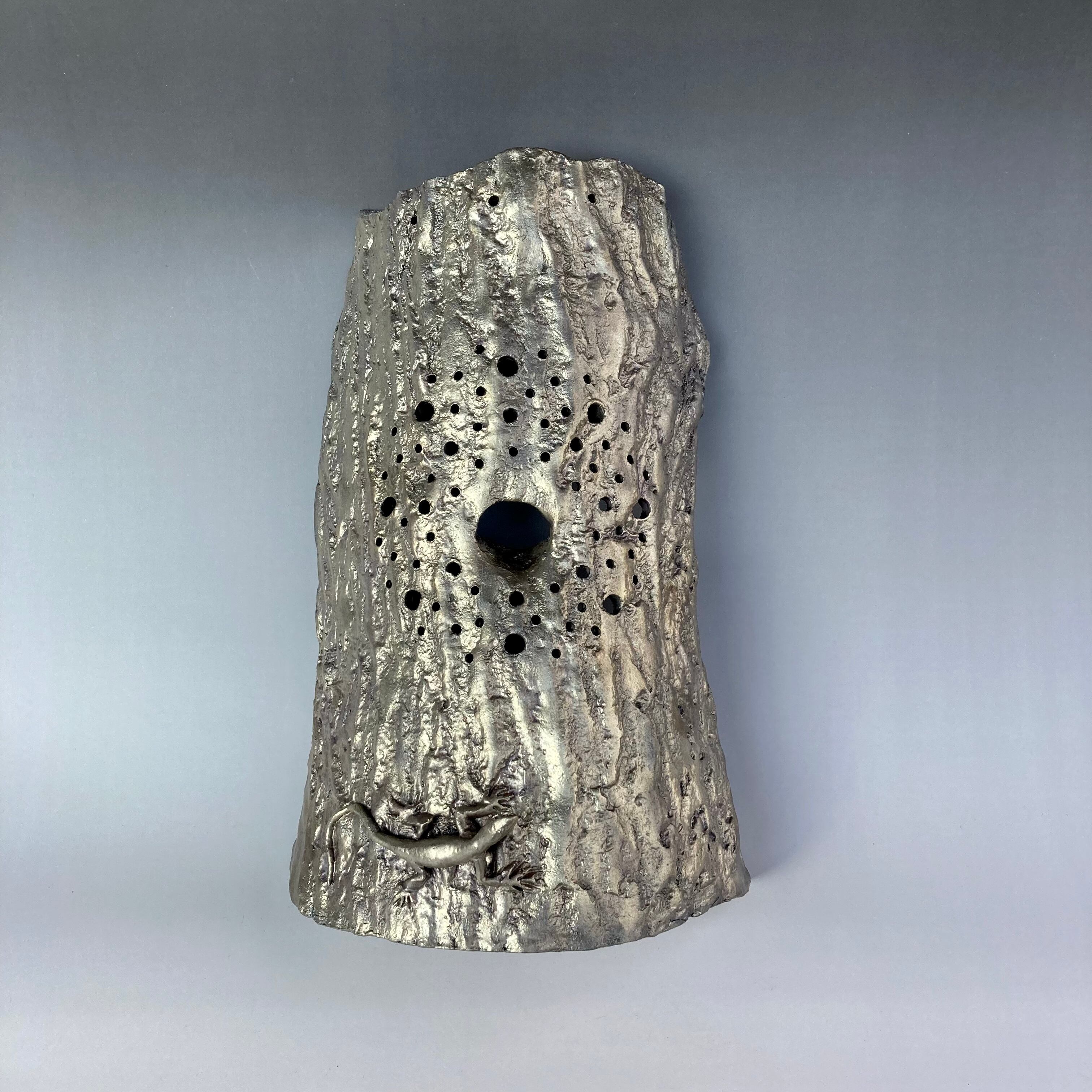 トカゲのいるビカクシダ着生陶盤(着生板) 壁掛け用①