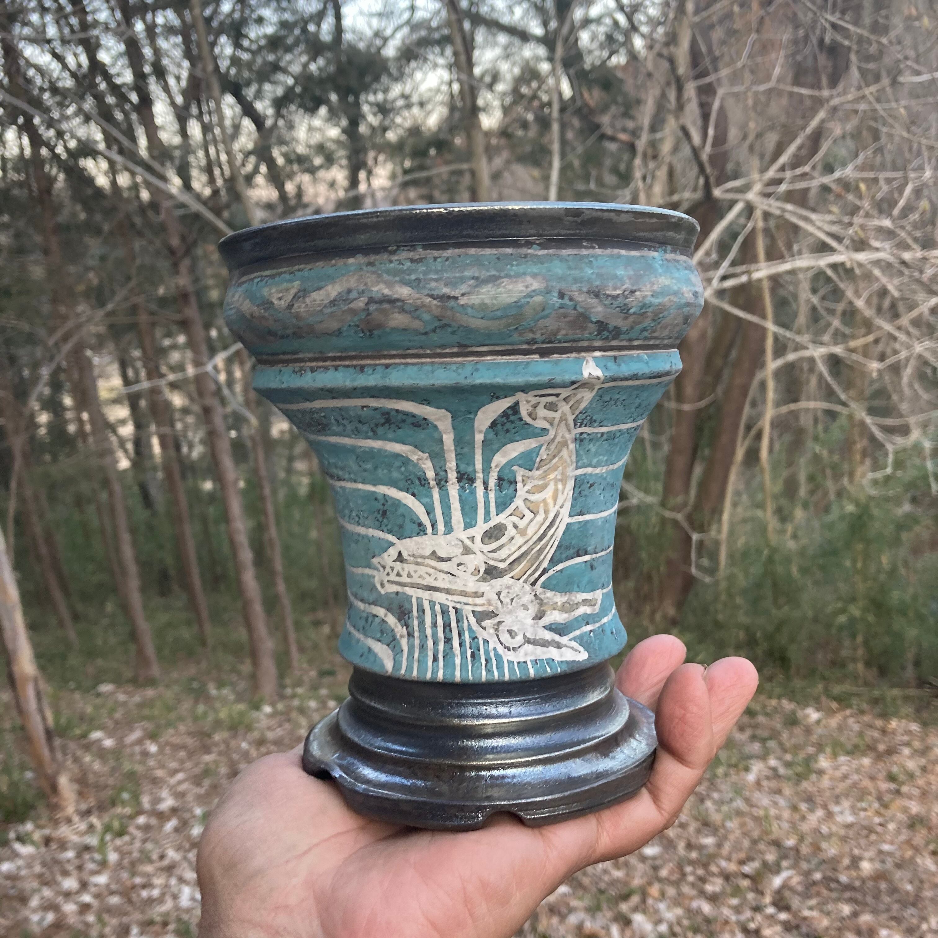 color slipによる彩色は、薪による炭彩が加わり派手でありながら渋さのある遺跡から発掘された彩色土器の風合いを帯びるよう願っています。