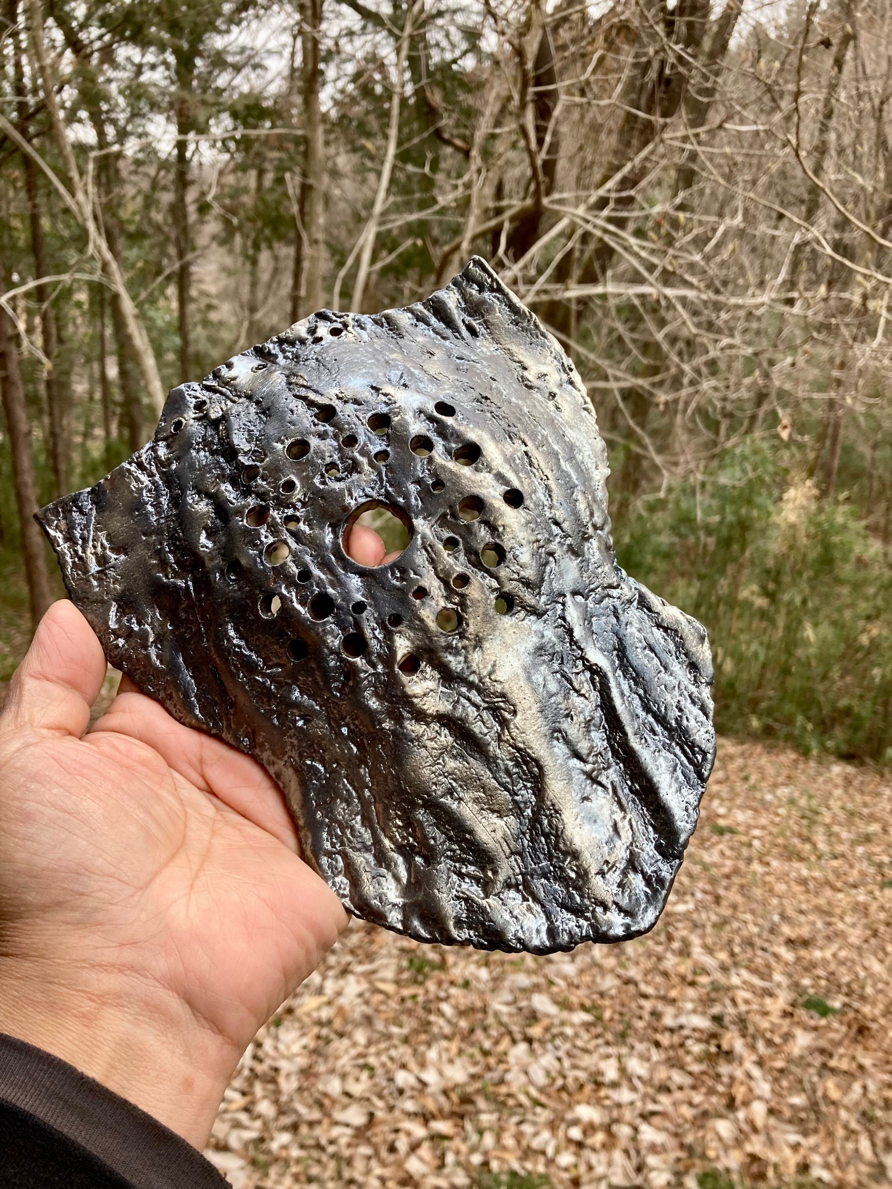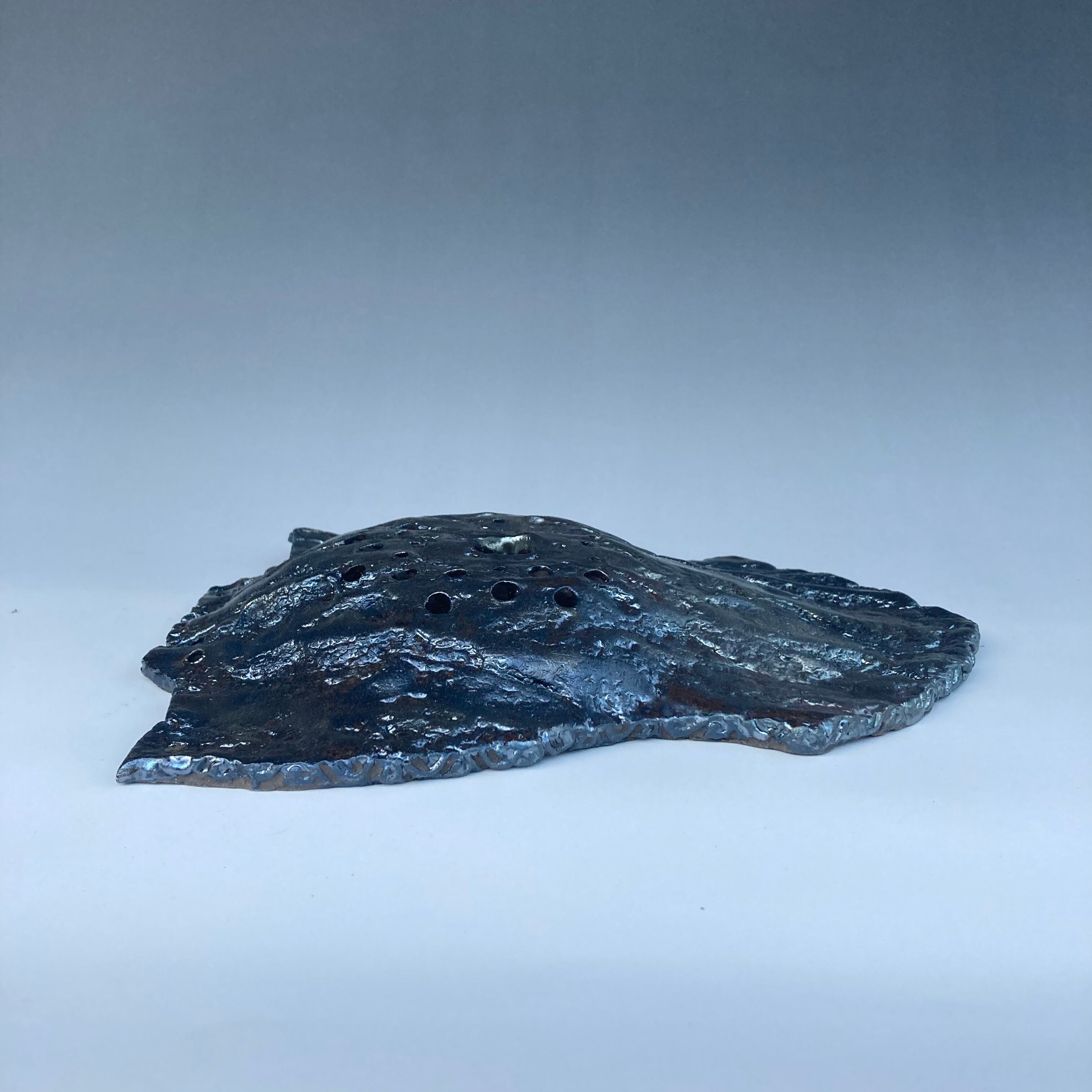 陶器で作ったビカクシダ(コウモリラン)の着生盤です。本体にふくらみを持たせて通気性を確保しました。貯水葉が全面を覆い前から水やりがやり難い場合でも、着生板裏から中央の穴を使い水やりが出来るように成形しました。