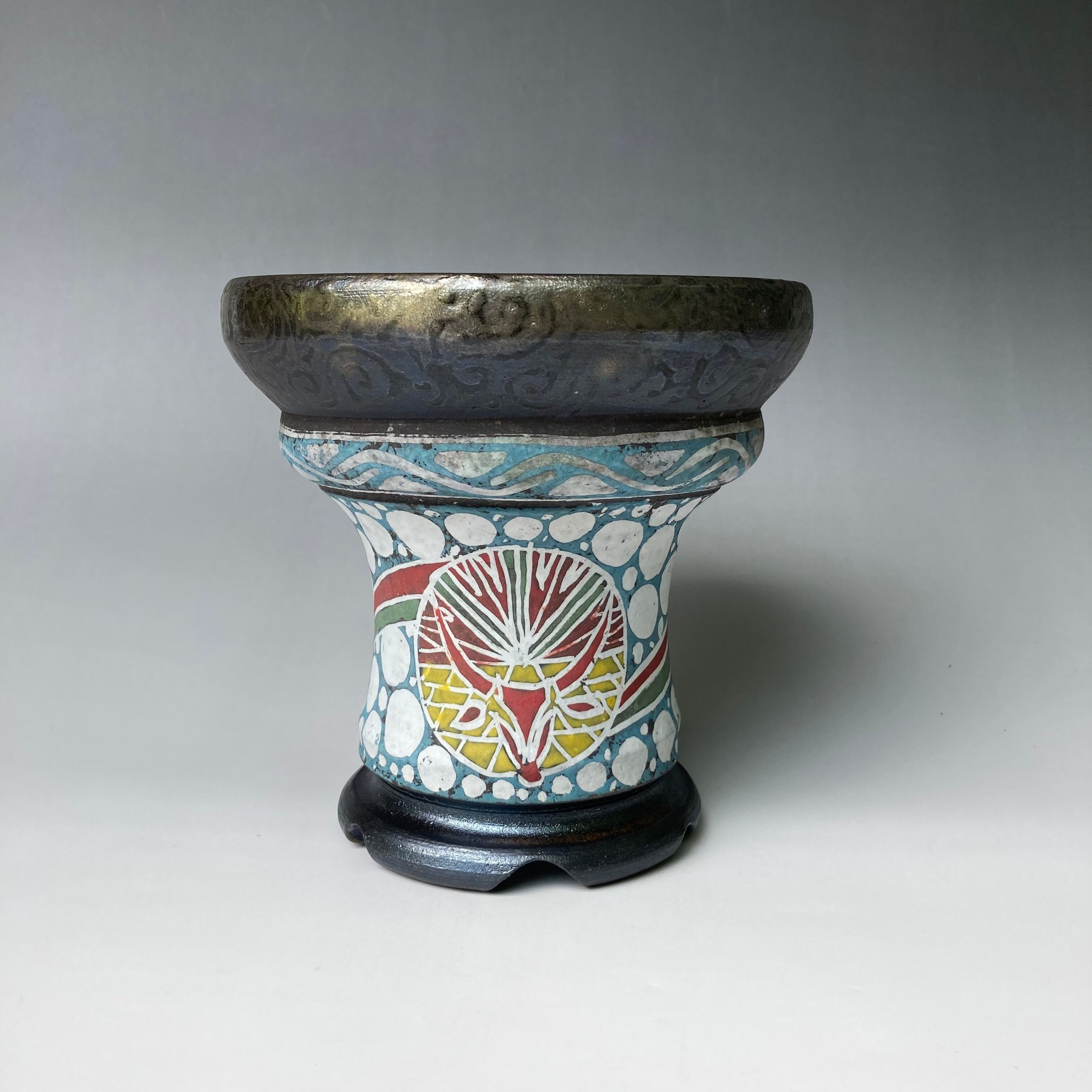 color slipによる彩色は、薪による炭彩が加わり派手でありながら渋さのある遺跡から発掘された彩色土器の風合いを帯びるよう願っています。