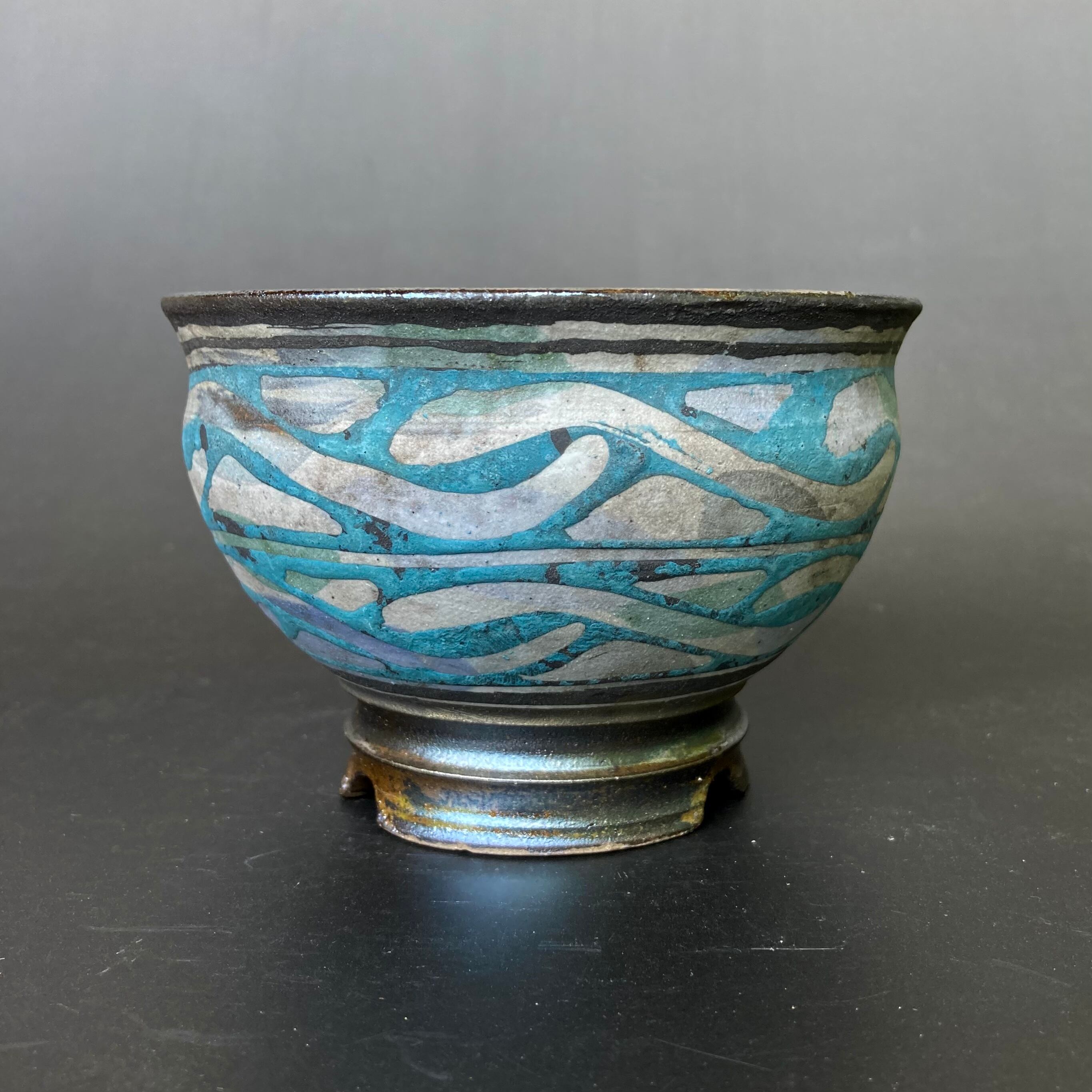 color slipによる彩色は、薪による炭彩が加わり派手でありながら渋い発色の仕上がりとなっています。古代の遺跡から発掘された彩色土器の様な風合いを帯びるよう志向して彩色したものです。