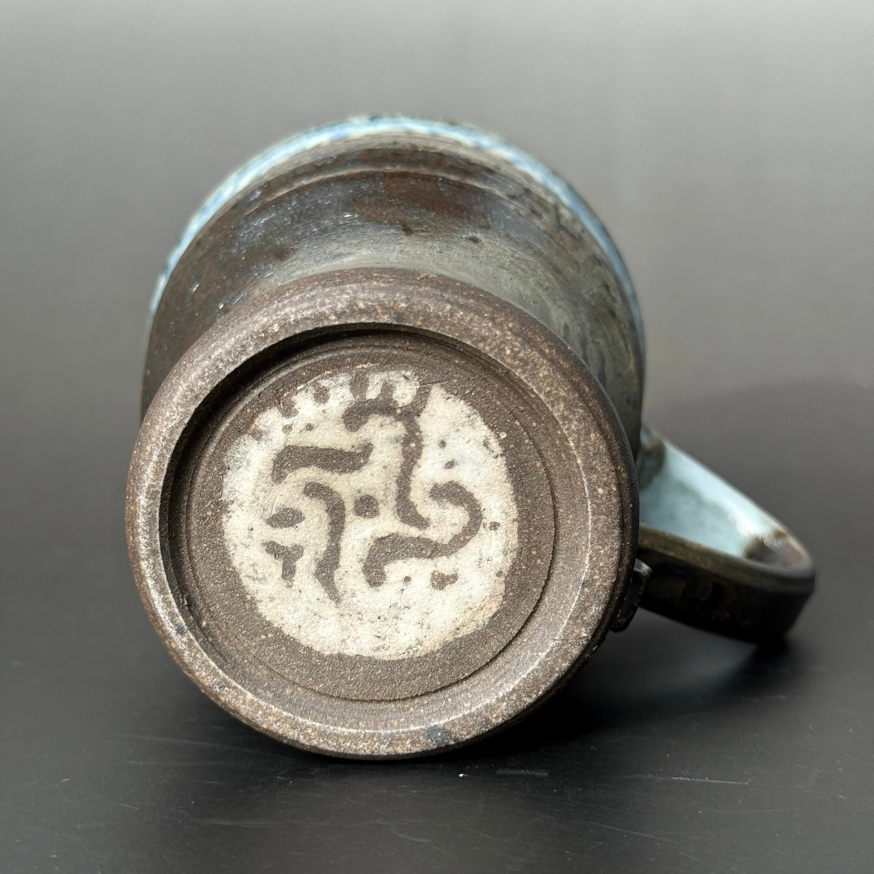 器肌全体に施された渋い光沢は、仕上げの薪による強還元焼成で得られるラスター系の金属光沢です。窯の中の置く位置で微妙に黒銀、黒金光沢などの発色が異なる特徴があります。