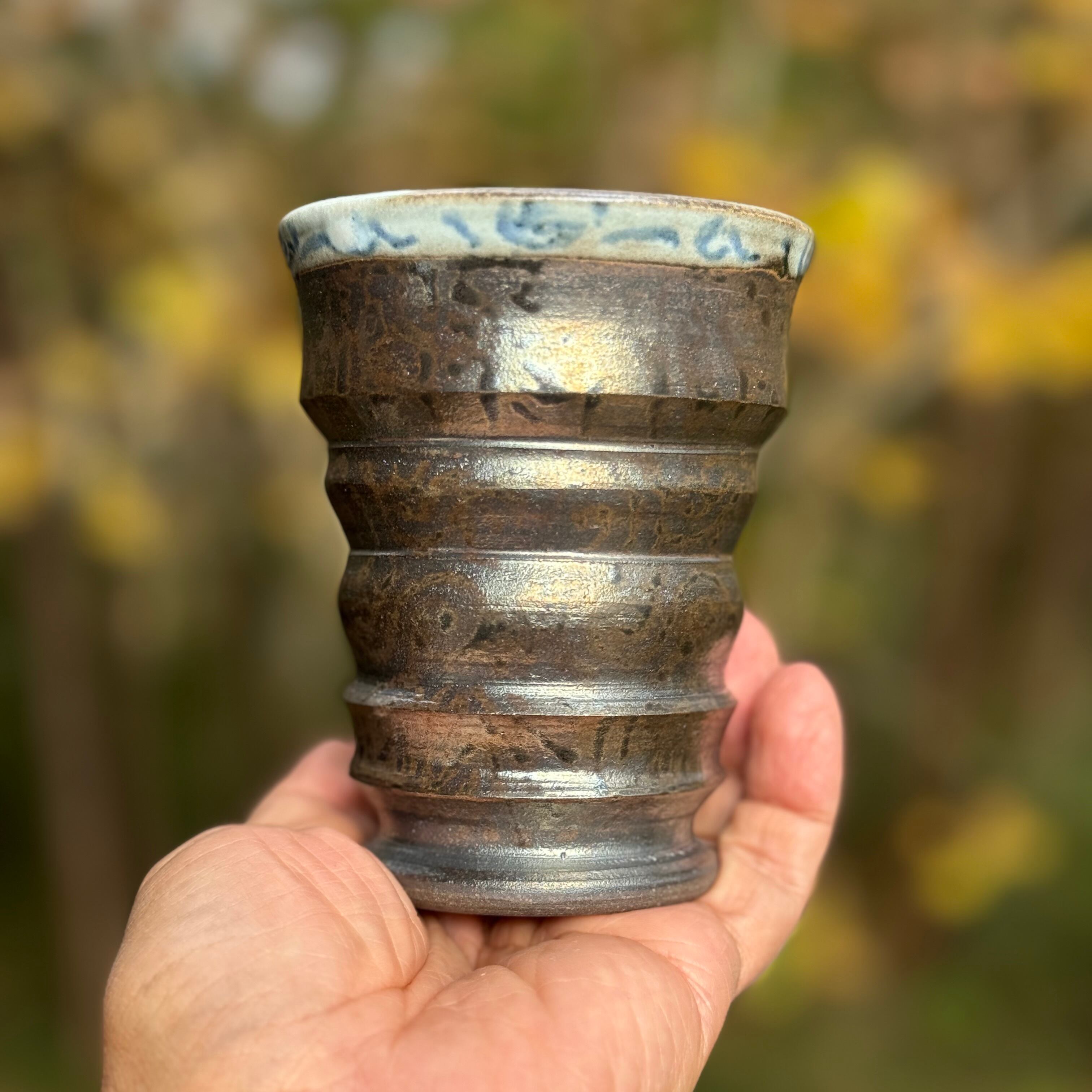 器肌全体に施された渋い光沢は、仕上げの薪による強還元焼成で得られるラスター系の金属光沢です。窯の中の置く位置で微妙に黒銀、黒金光沢などの発色が異なる特徴があります。