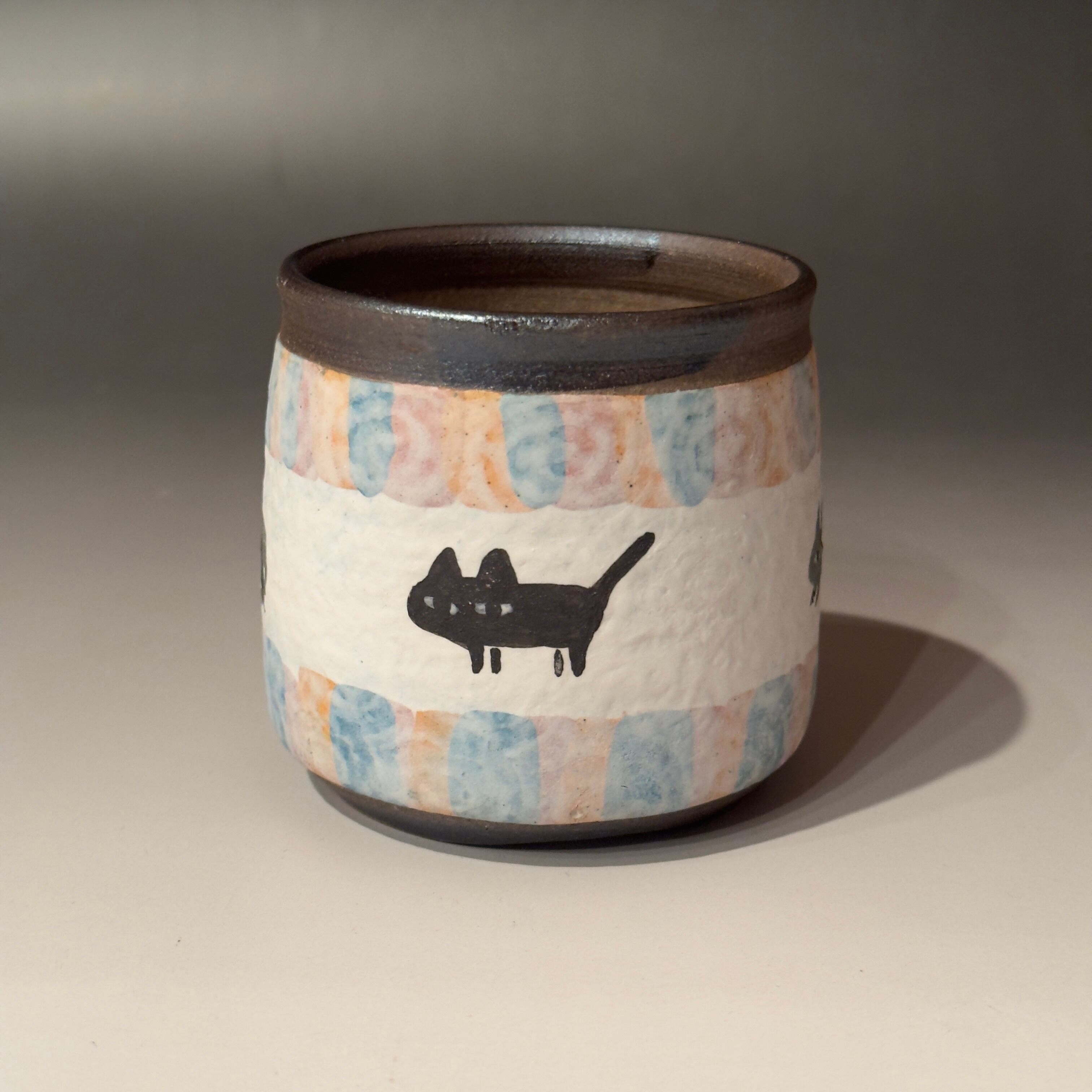 color slipによる彩色は、薪による炭彩が加わり派手でありながら渋い発色の仕上がりとなっています。古代の遺跡から発掘された彩色土器の様な風合いを帯びるよう志向して彩色したものです。