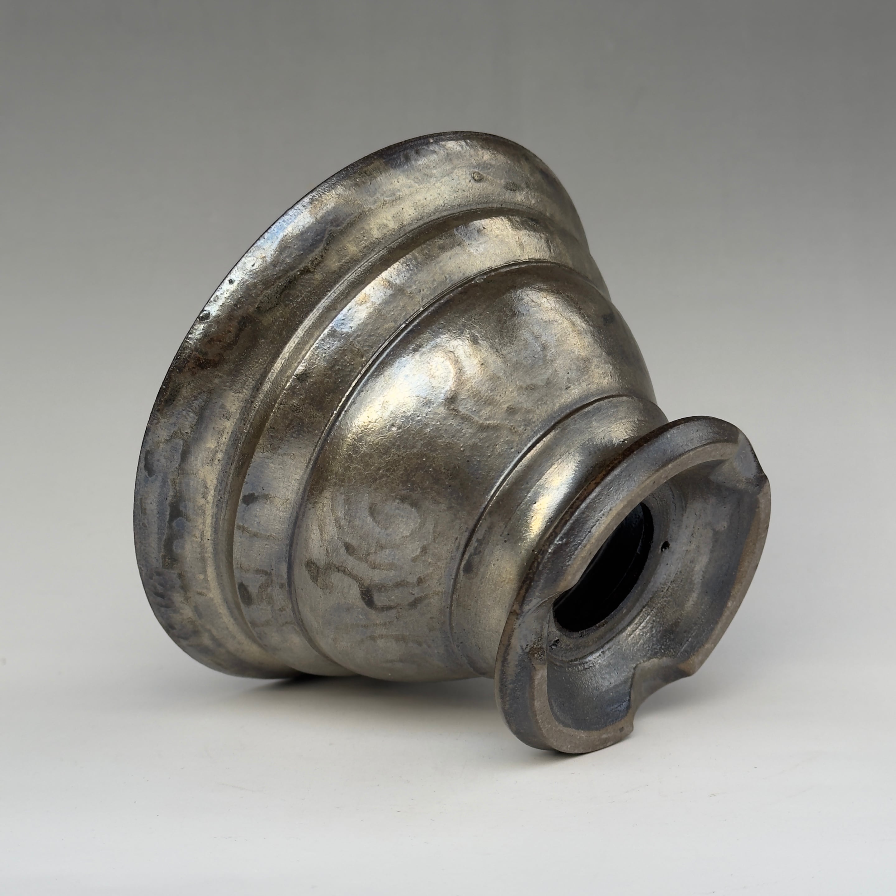 器肌全体に施された渋い光沢は、仕上げの薪による強還元焼成で得られるラスター系の金属光沢です。窯の中の置く位置で微妙に黒銀、黒金光沢がグラデーションしながら発色する位置が変化する特徴があります。
