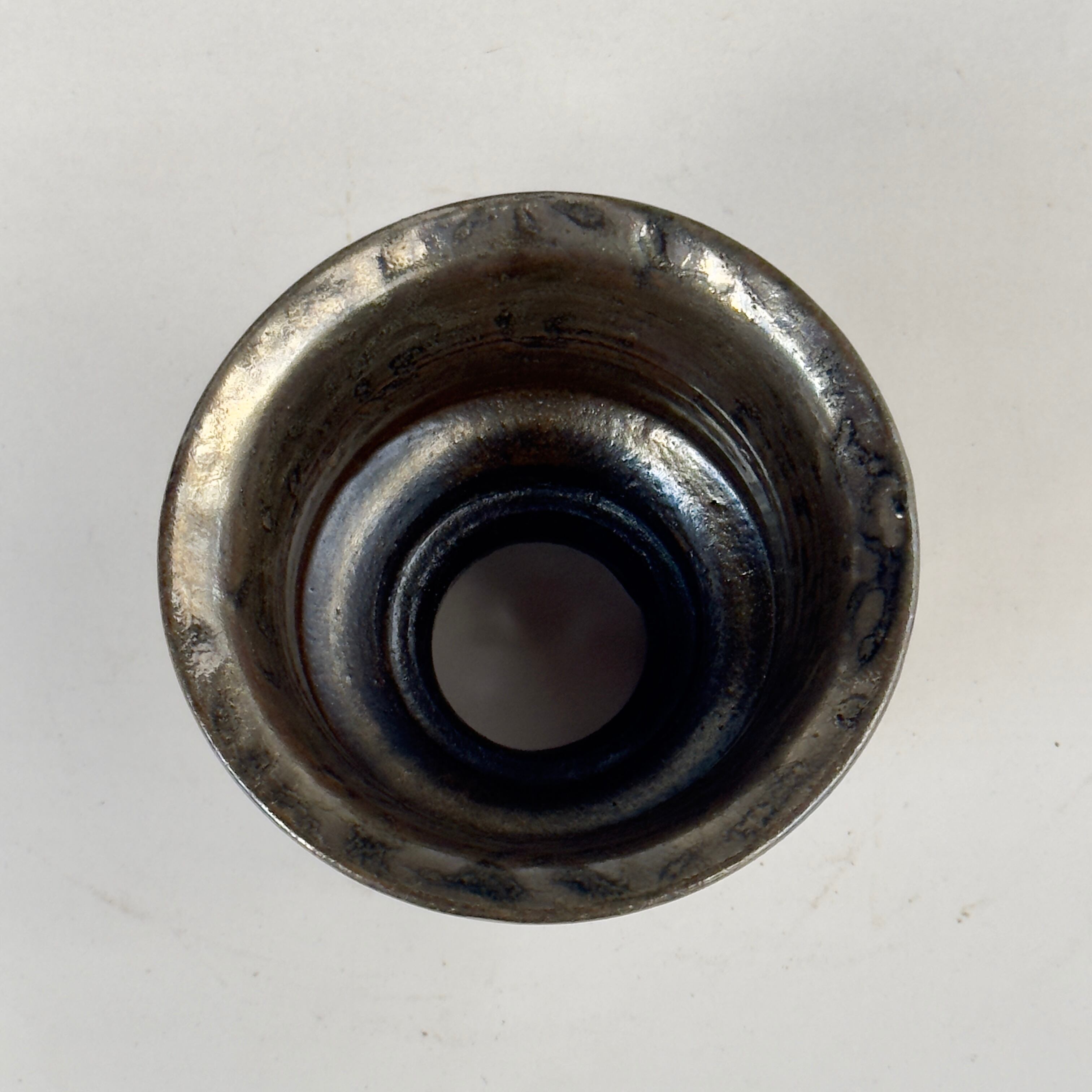 器肌全体に施された渋い光沢は、仕上げの薪による強還元焼成で得られるラスター系の金属光沢です。窯の中の置く位置で微妙に黒銀、黒金光沢がグラデーションしながら発色する位置が変化する特徴があります。