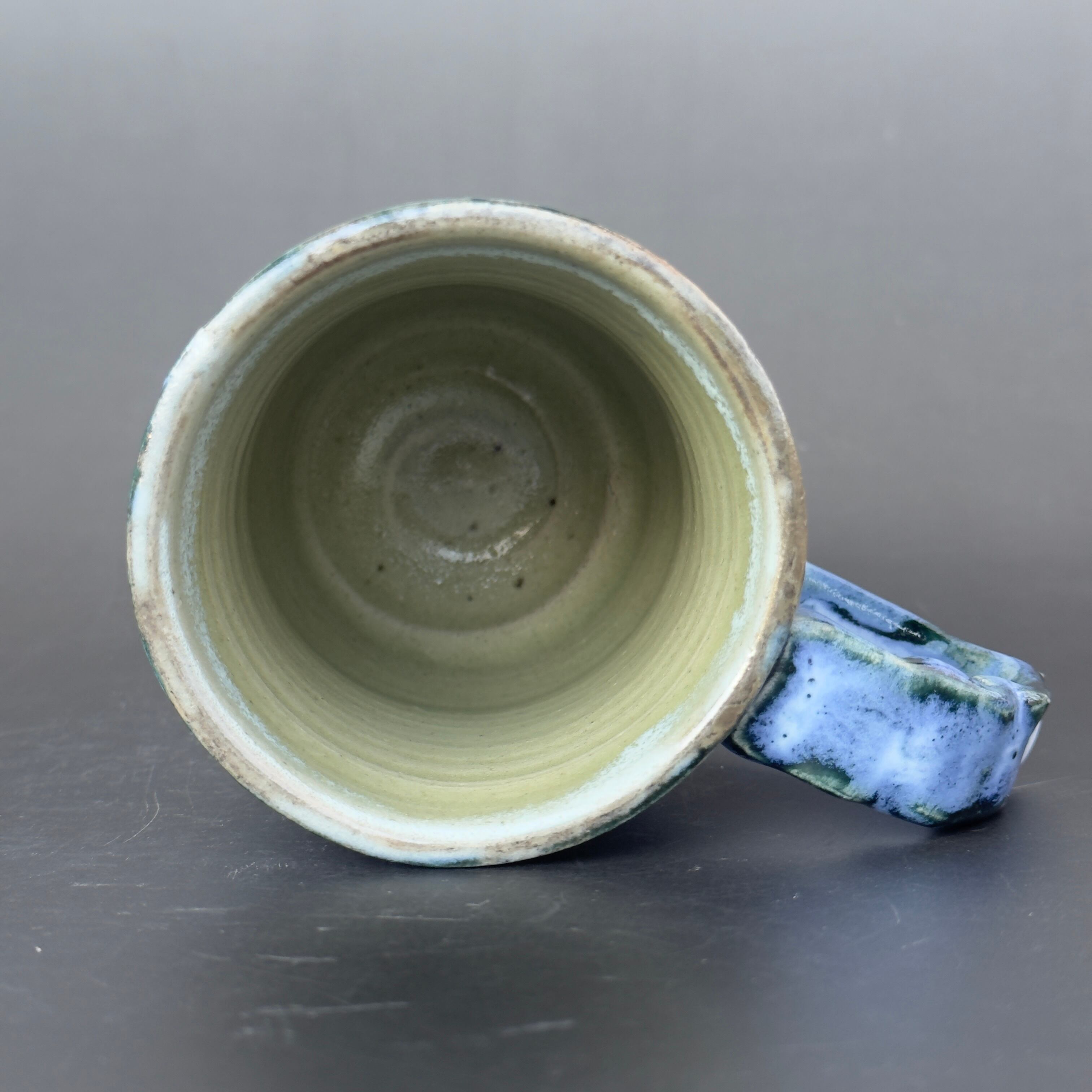 内側は、淡く緑色がかった艶のある灰釉、水色が映える釉薬です。