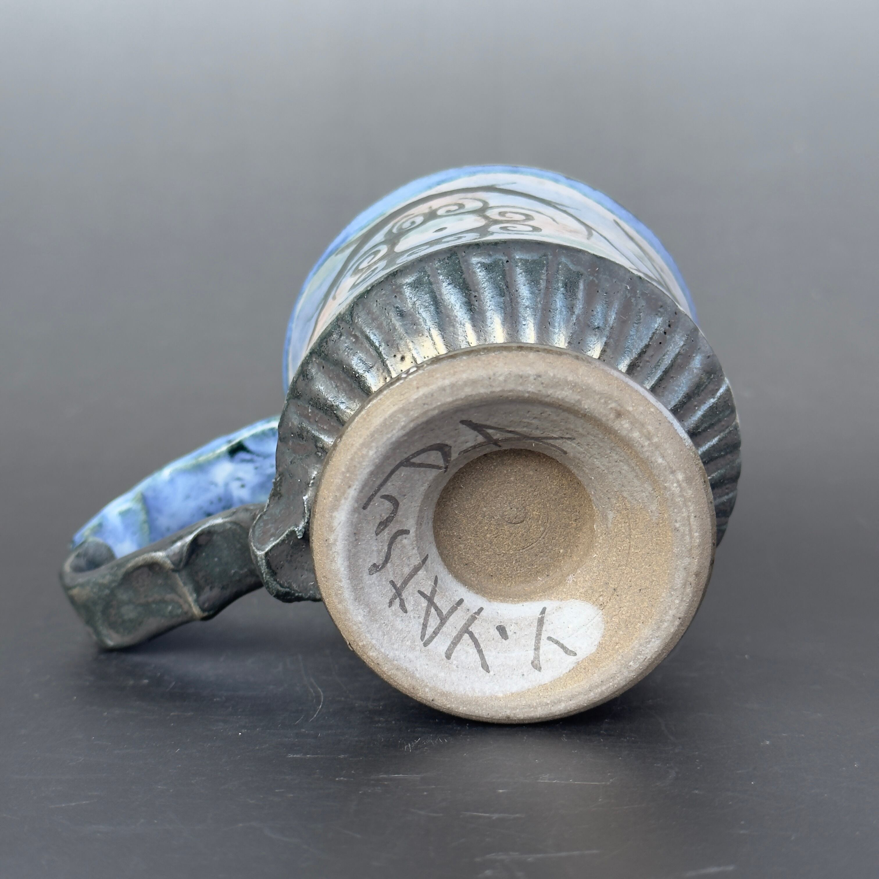 内側は、淡い緑色の灰釉、水色が映える釉薬です。