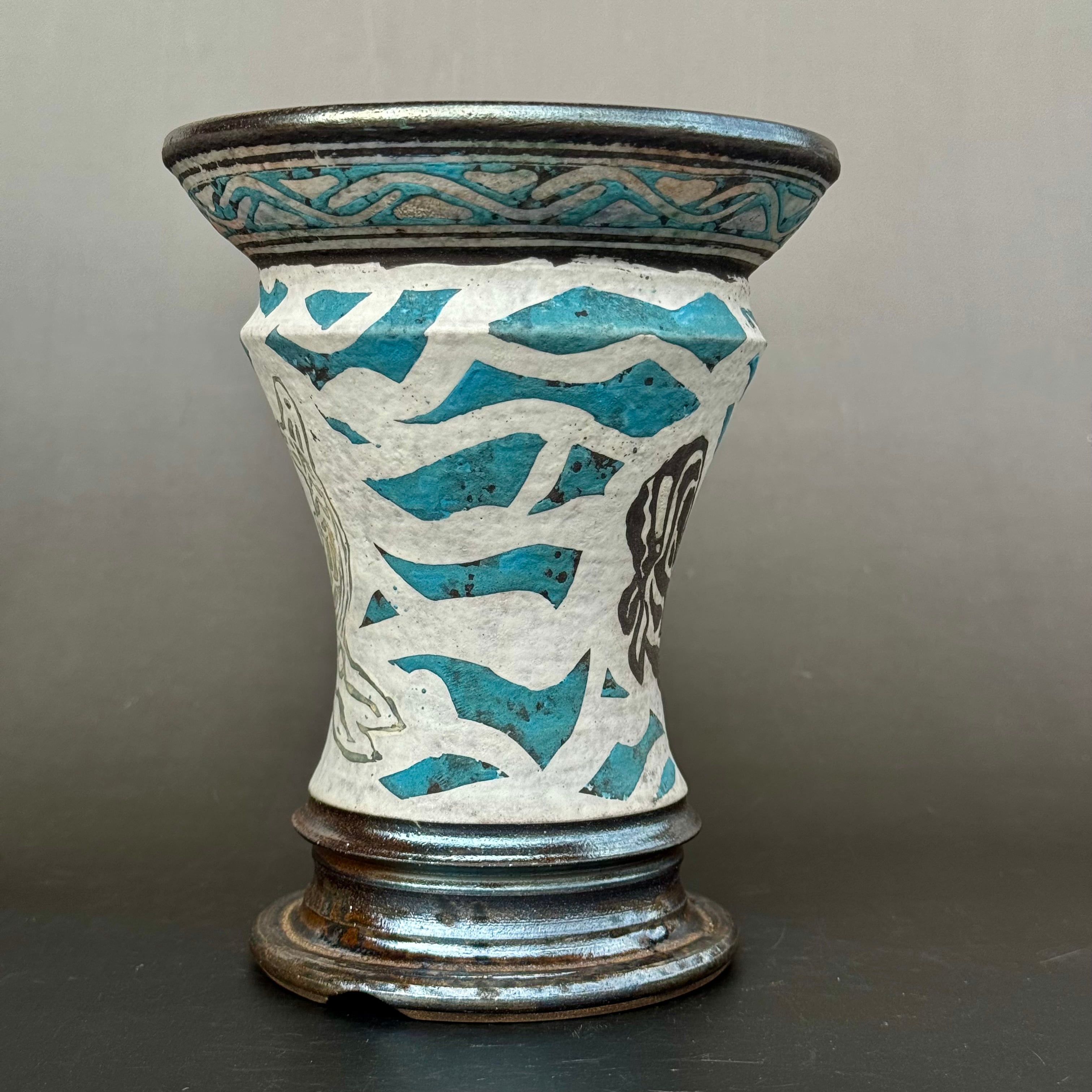 color slipによる彩色は、薪による炭彩が加わり派手でありながら渋さのある遺跡から発掘された彩色土器の風合いを帯びるよう願っています。