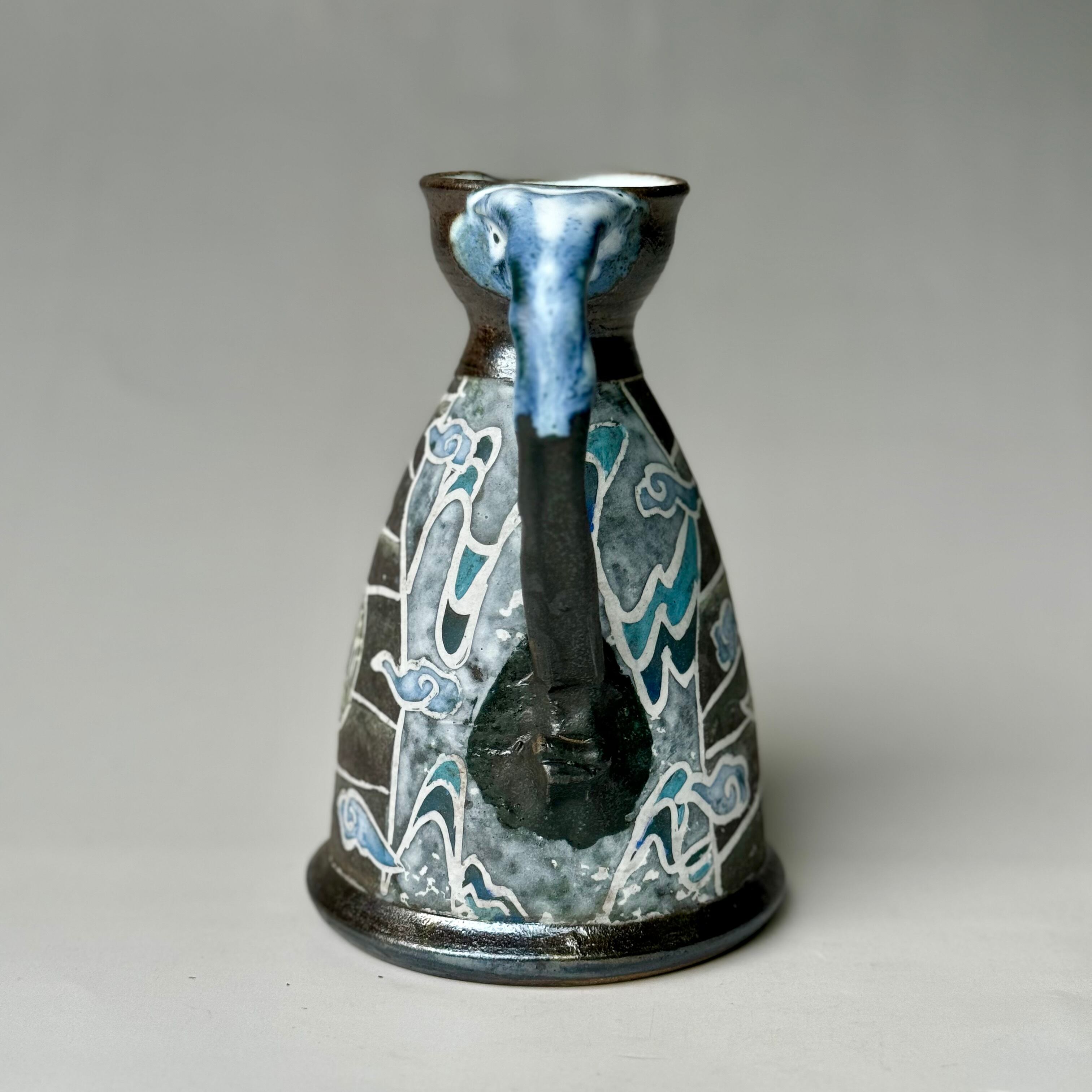 三日月とたなびく雲をデザイン化し手描きで描いた酒器(徳利)です。一輪ざしとしても使えます。