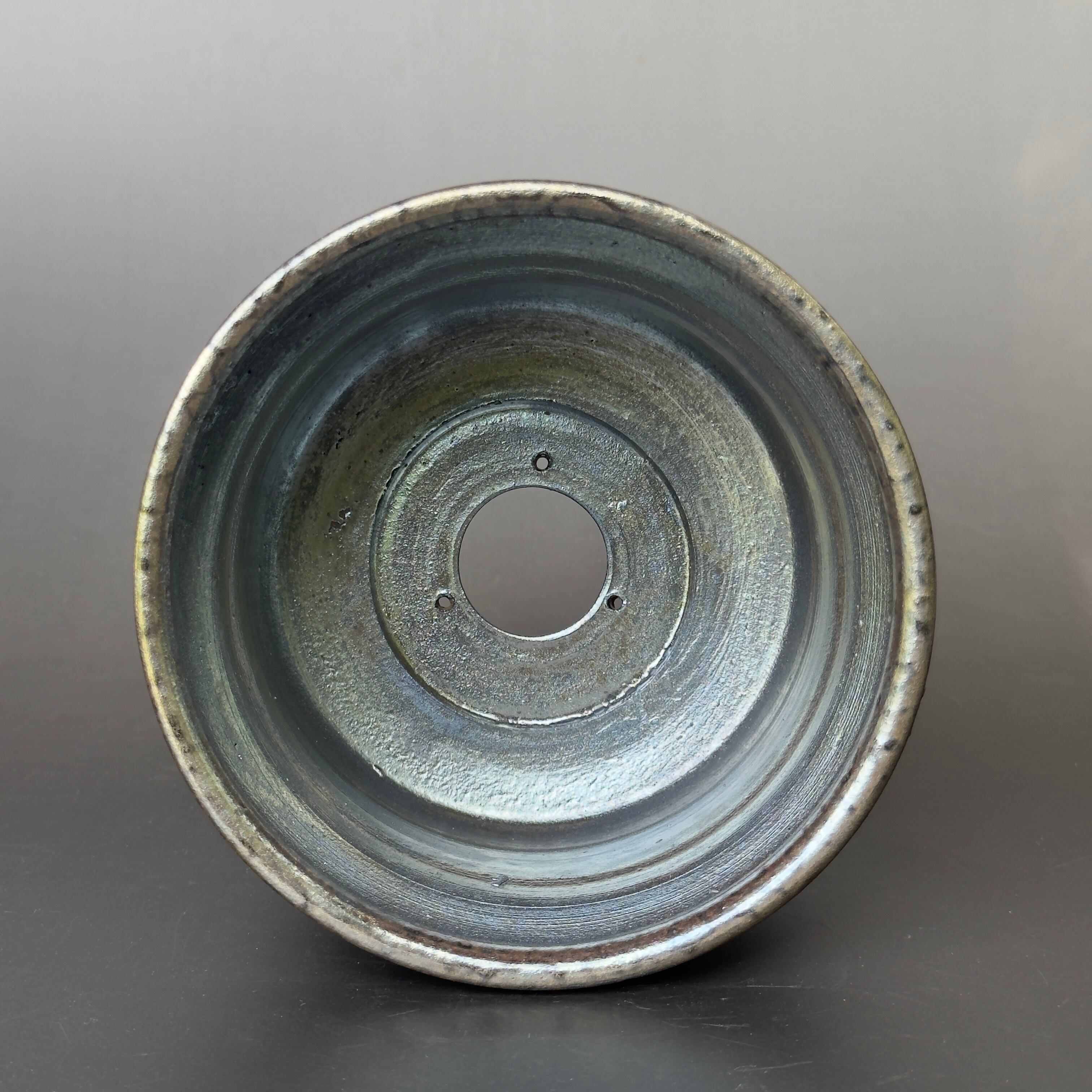 器肌全体に施された渋い光沢は、仕上げの薪による強還元焼成で得られるラスター系の金属光沢です。窯の中の置く位置で微妙に黒銀、黒金光沢などの発色が異なる特徴があります。