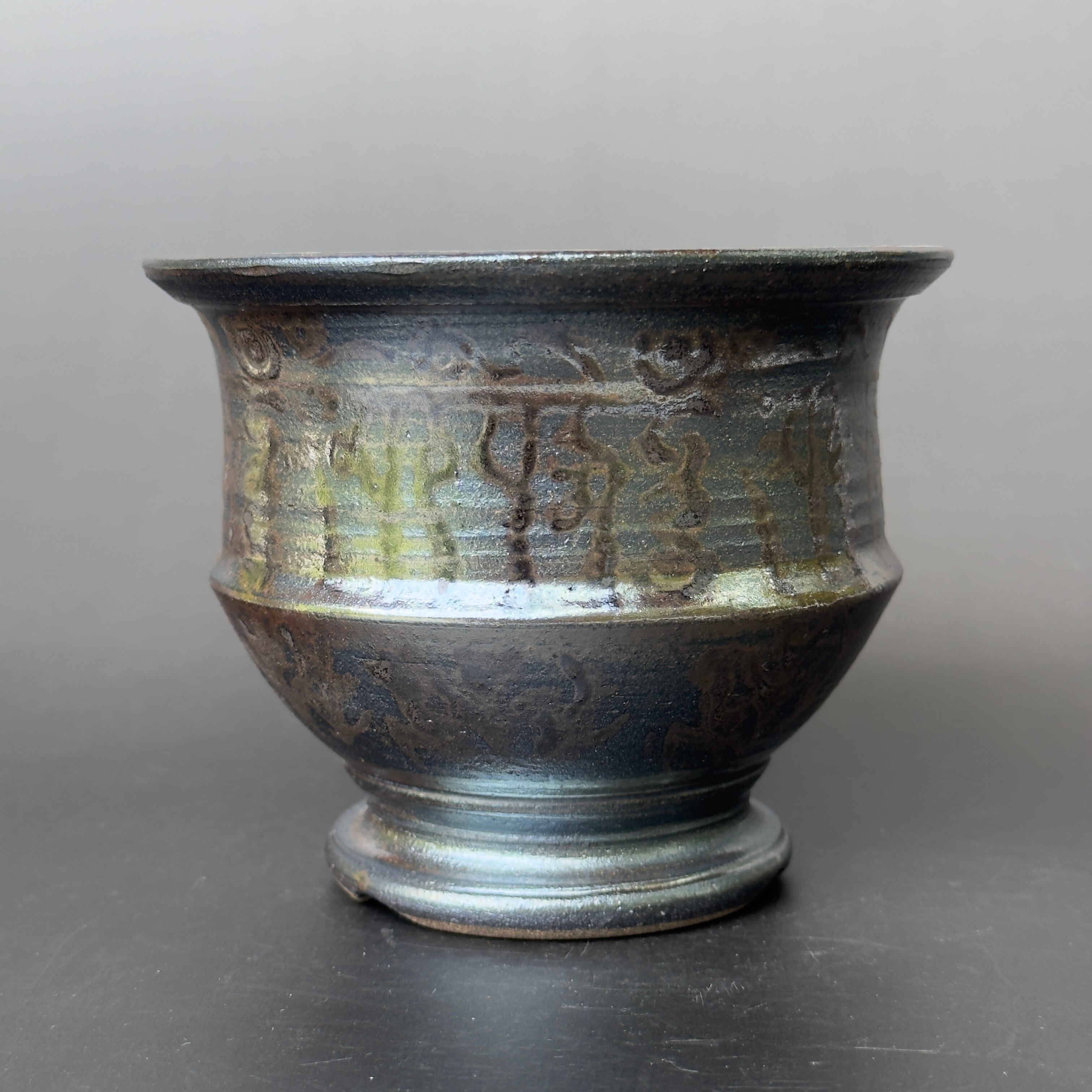器肌全体に施された渋い光沢は、仕上げの薪による強還元焼成で得られるラスター系の金属光沢です。窯の中の置く位置で微妙に黒銀、黒金光沢などの発色が異なる特徴があります。