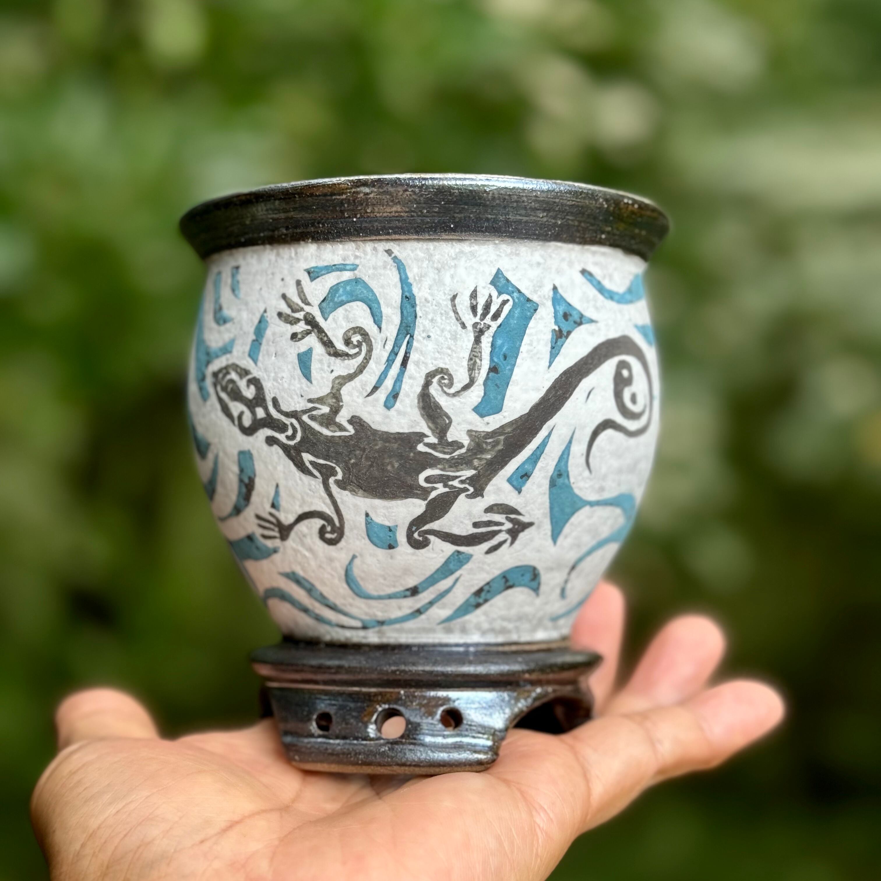 color slipによる彩色は、薪による炭彩が加わり派手でありながら渋さのある遺跡から発掘された彩色土器の風合いを帯びるよう願っています。
