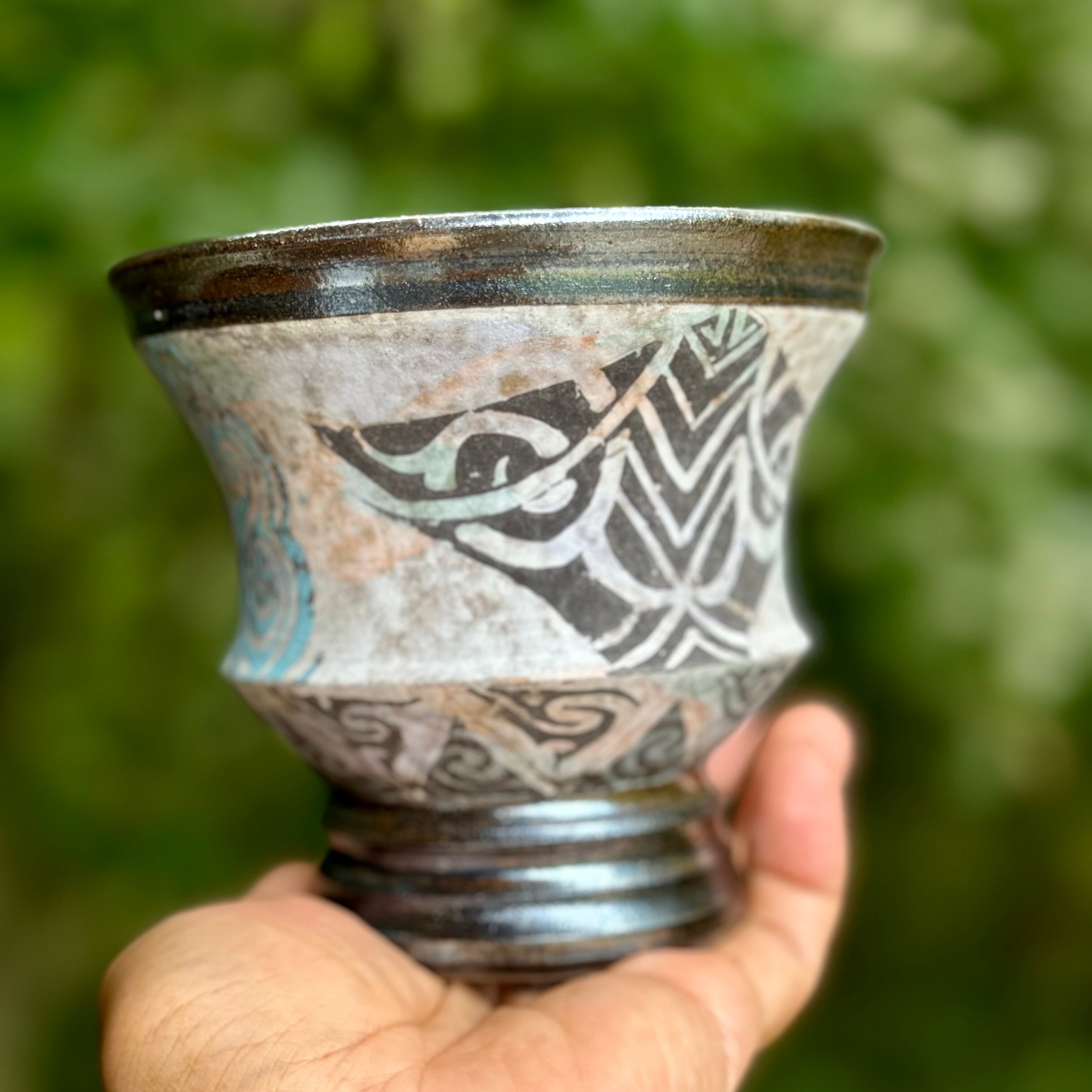 color slipによる彩色は、薪による炭彩が加わり派手でありながら渋さのある遺跡から発掘された彩色土器の風合いを帯びるよう願っています。