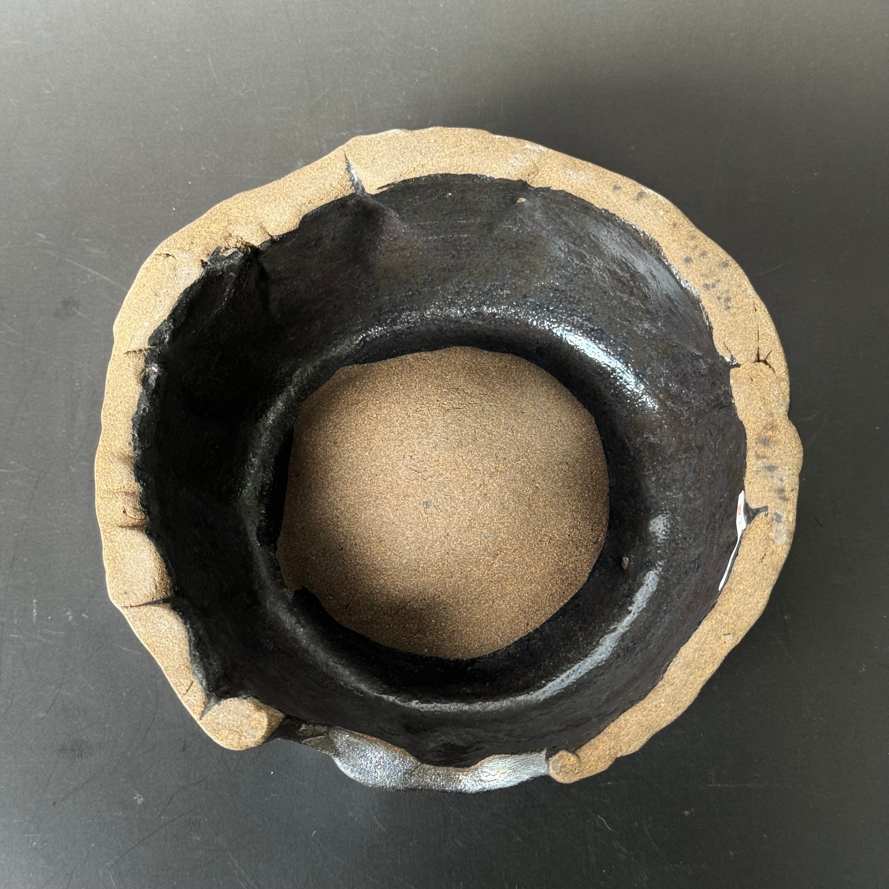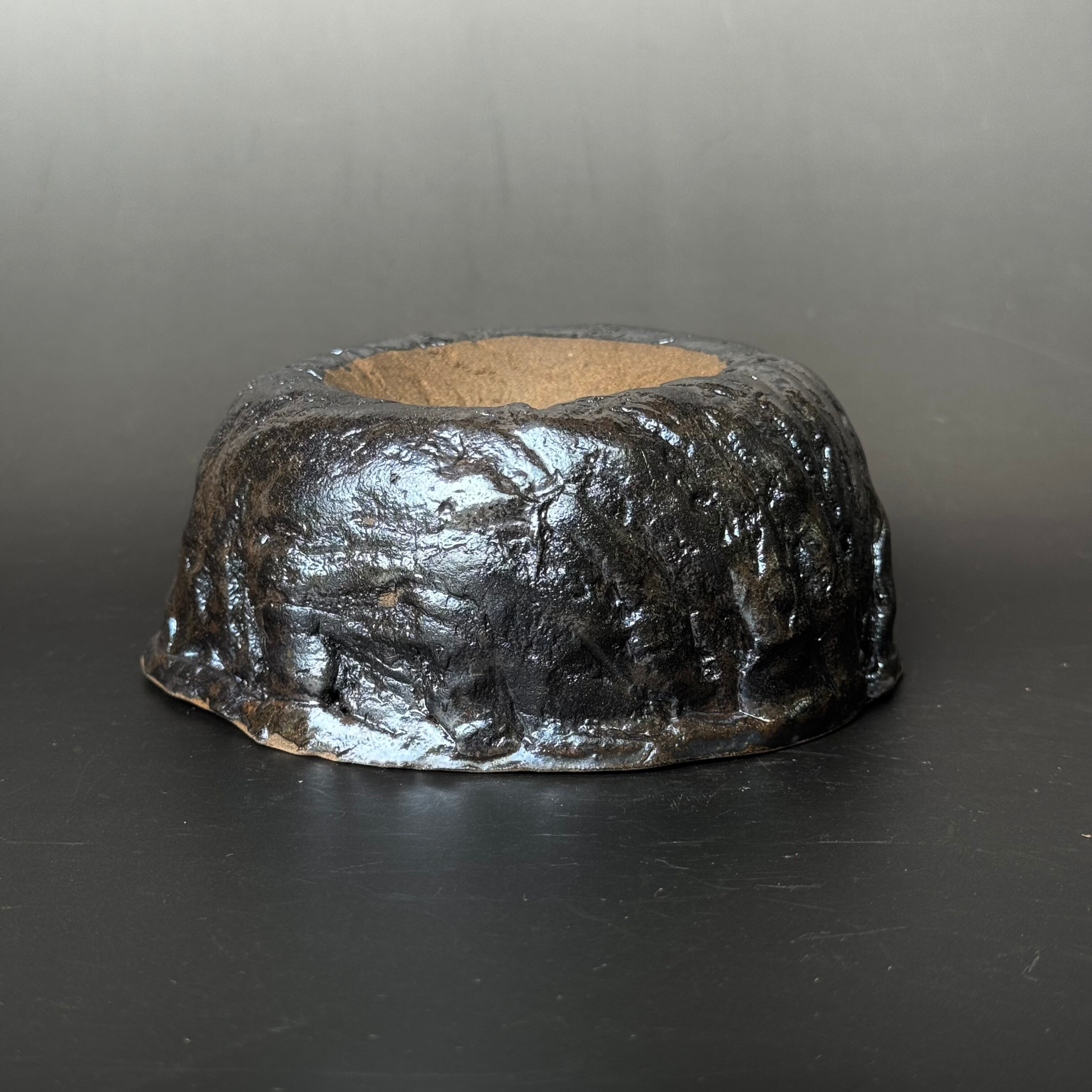 器肌全体に施された渋い光沢は、仕上げの薪による強還元焼成で得られるラスター系の金属光沢です。窯の中の置く位置で微妙に黒銀、黒金光沢などのグラデーション発色が異なる特徴があります。