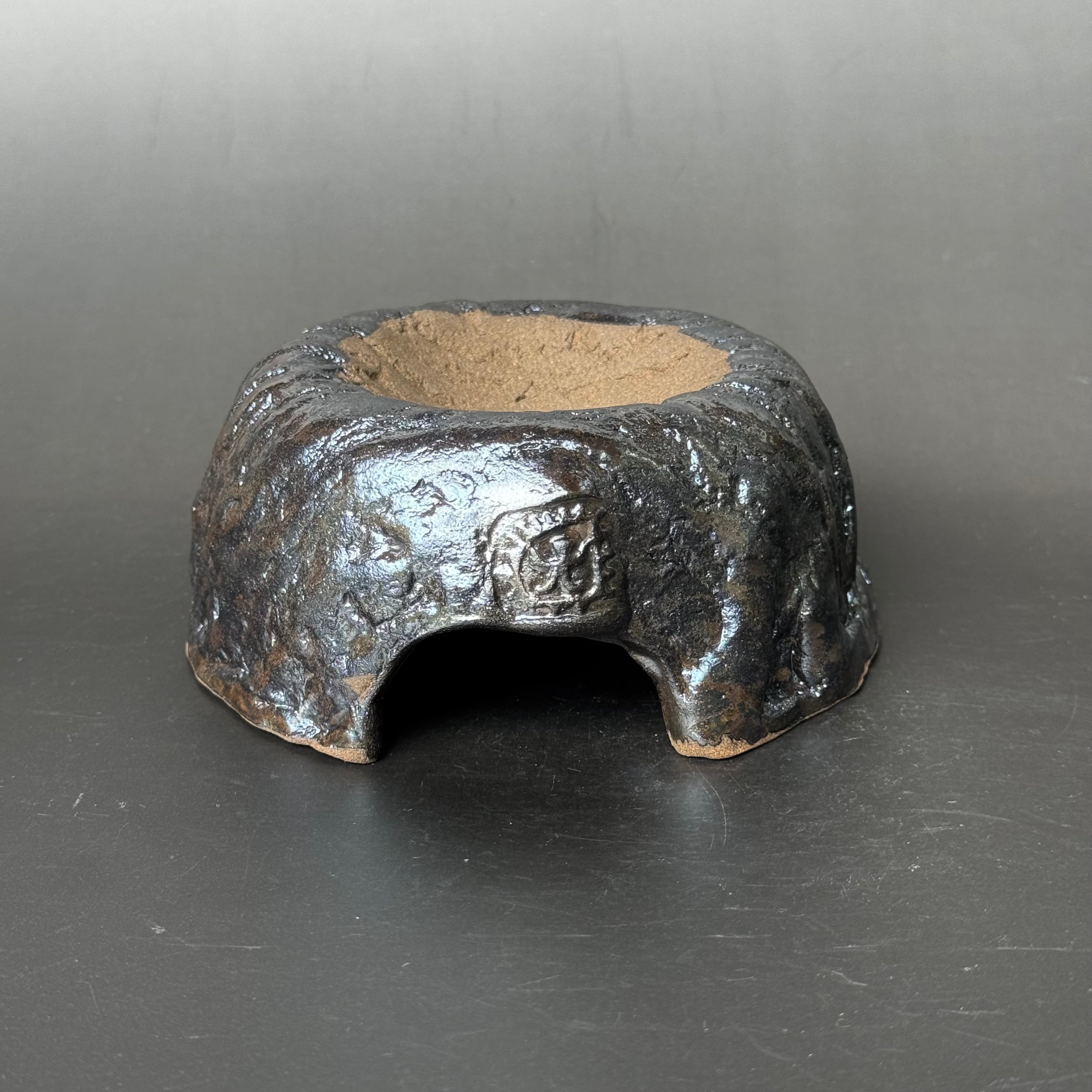 レオパードゲッコー(ヒョウモントカゲモドギ)やニシアフリカトカゲモドキ、その他トカゲ、ヤモリ、ヘビ等の爬虫類や両生類の保湿用に使えるウェットシェルターを想定し作陶しました。上部の凹部に水を入れることができます。この部分は、高温の焼き締め(釉薬無施釉)で、ゆっくりと水分が浸透しシェルター内の湿度をあげる効果があります。半日くらいかけてシェルター内部の天井が湿り始めます。水は季節にもよりますが、3日から5日ほど持ちます。半日くらいかけてシェルター内部の天井が湿り始めます。水は季節にもよりますが、3日から5日ほど持ちます。また内側には釉薬(砂金釉)をかけ、乾き過ぎないように配慮しました。高温での焼成で焼きしまっているためカビなども繁殖しずらいと思います。