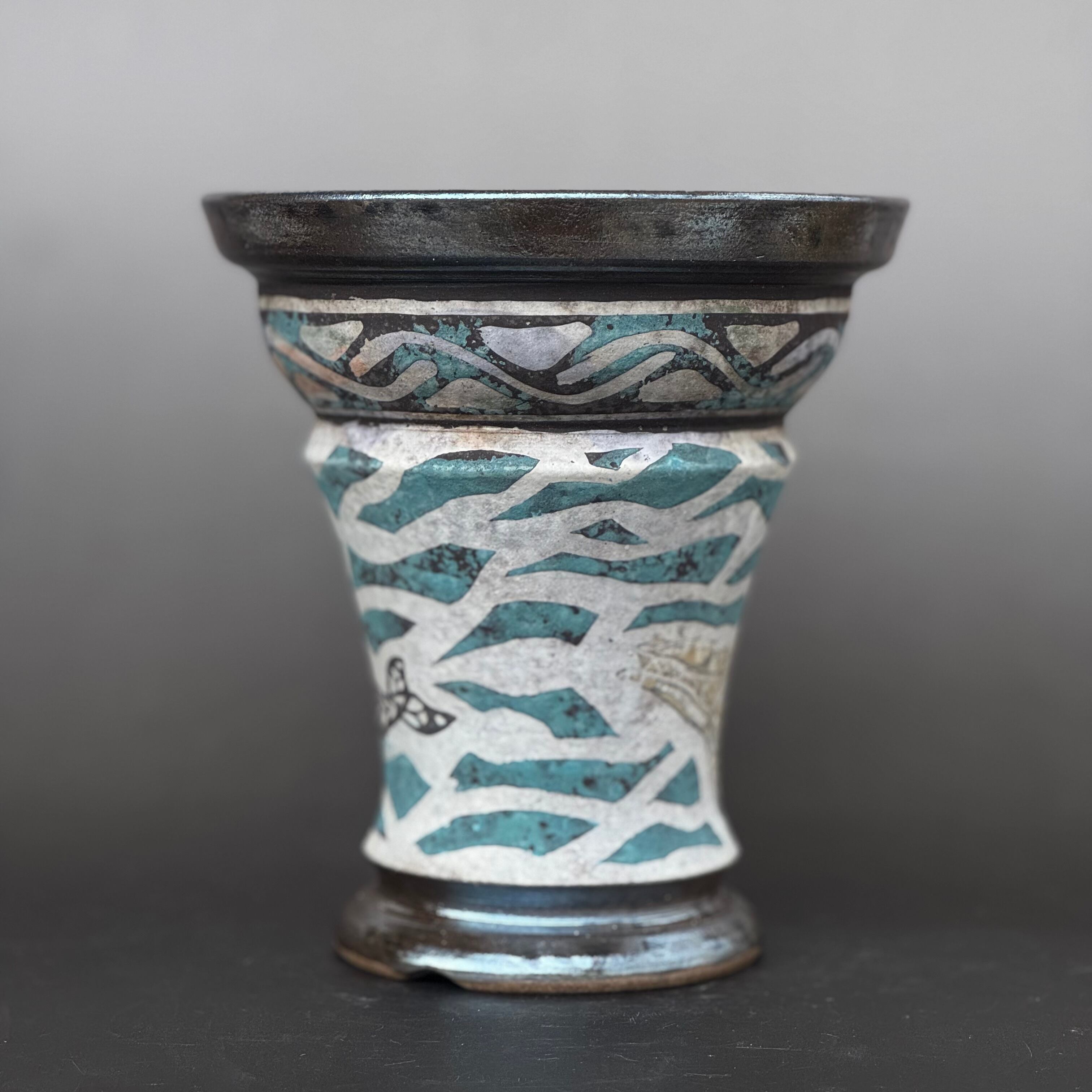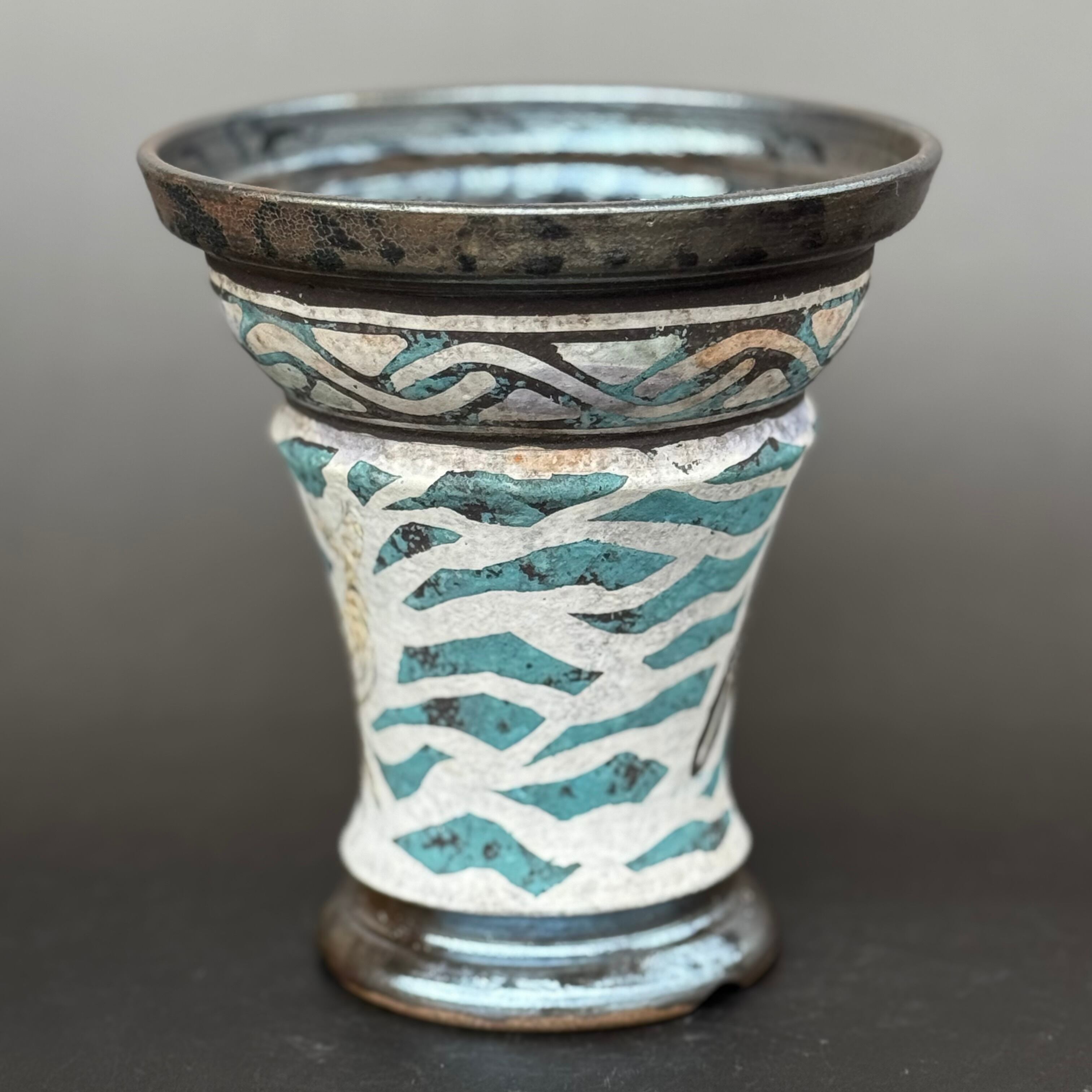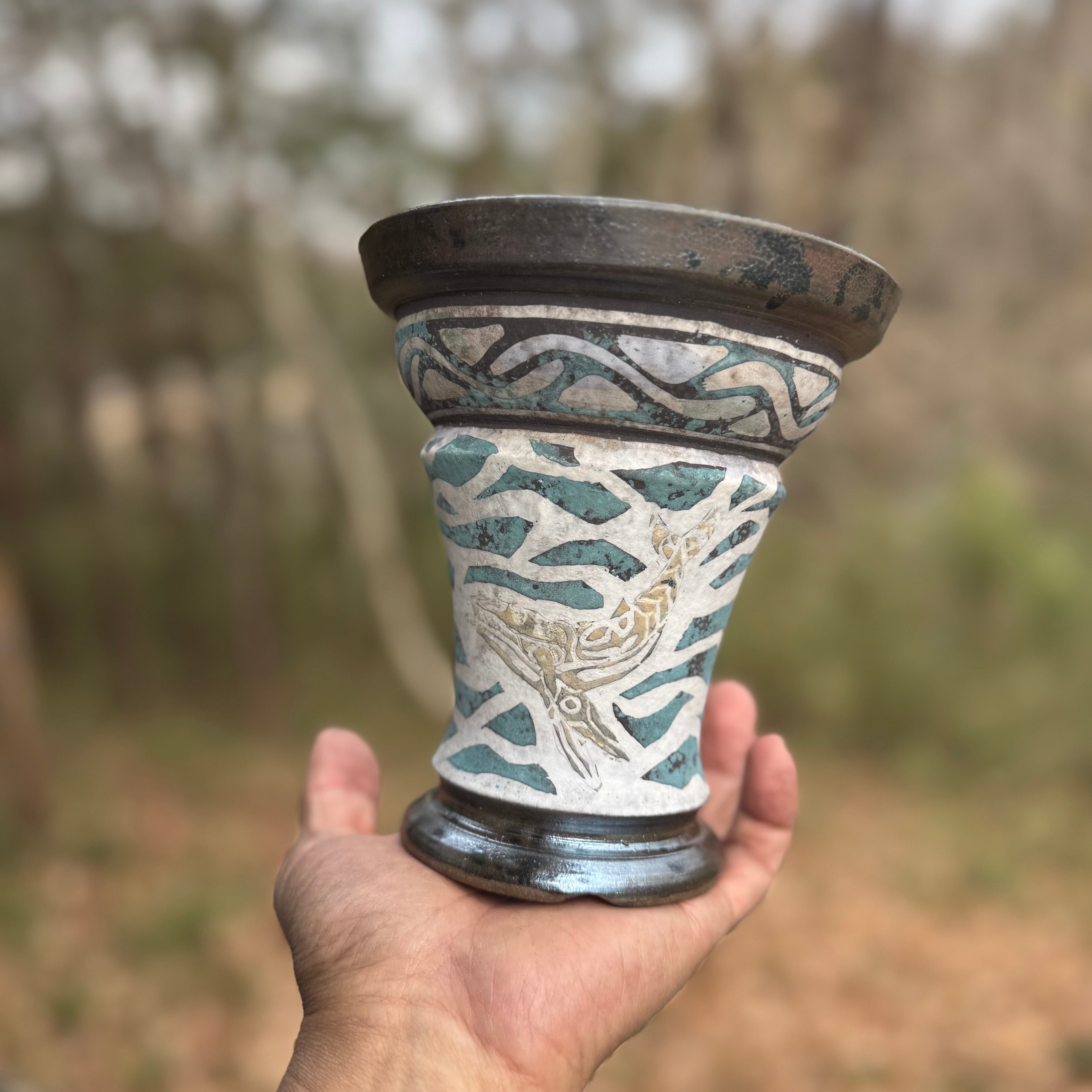 color slipによる彩色は、薪による炭彩が加わり派手でありながら渋さのある遺跡から発掘された彩色土器の風合いを帯びるよう願っています。
