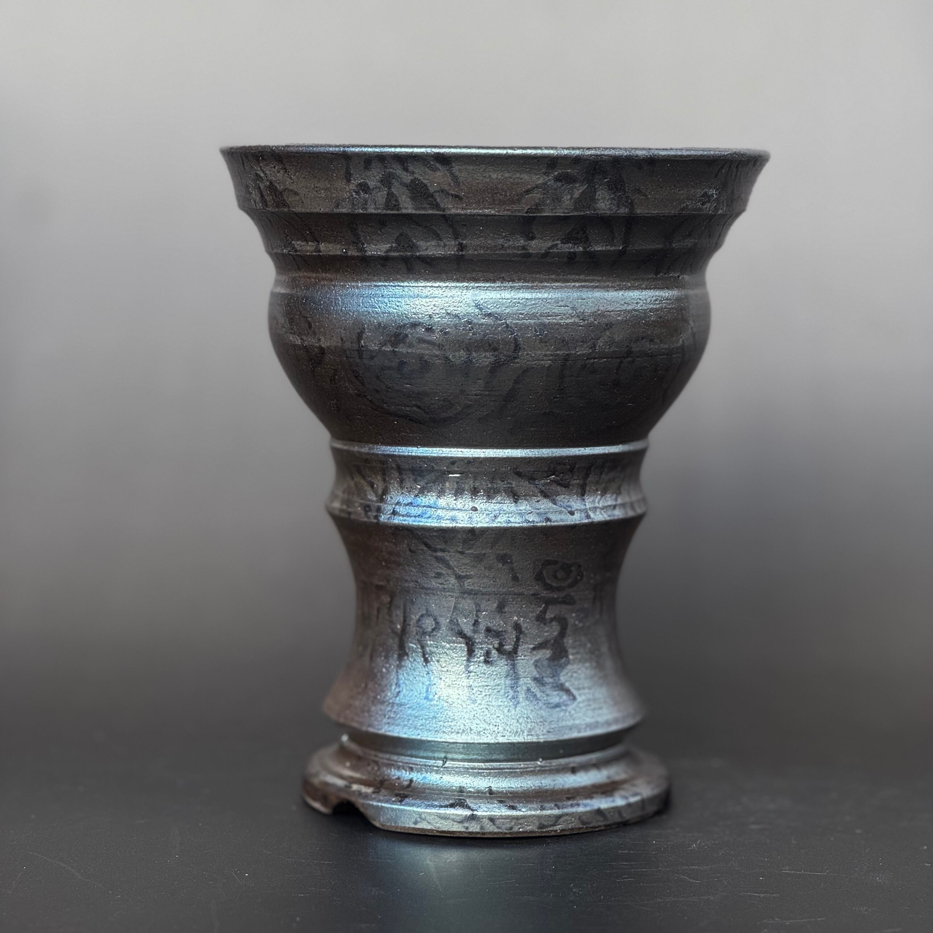 器肌全体に施された渋い光沢は、仕上げの薪による強還元焼成で得られるラスター系の金属光沢です。窯の中の置く位置で微妙に黒銀、黒金光沢などの発色が異なる特徴があります。